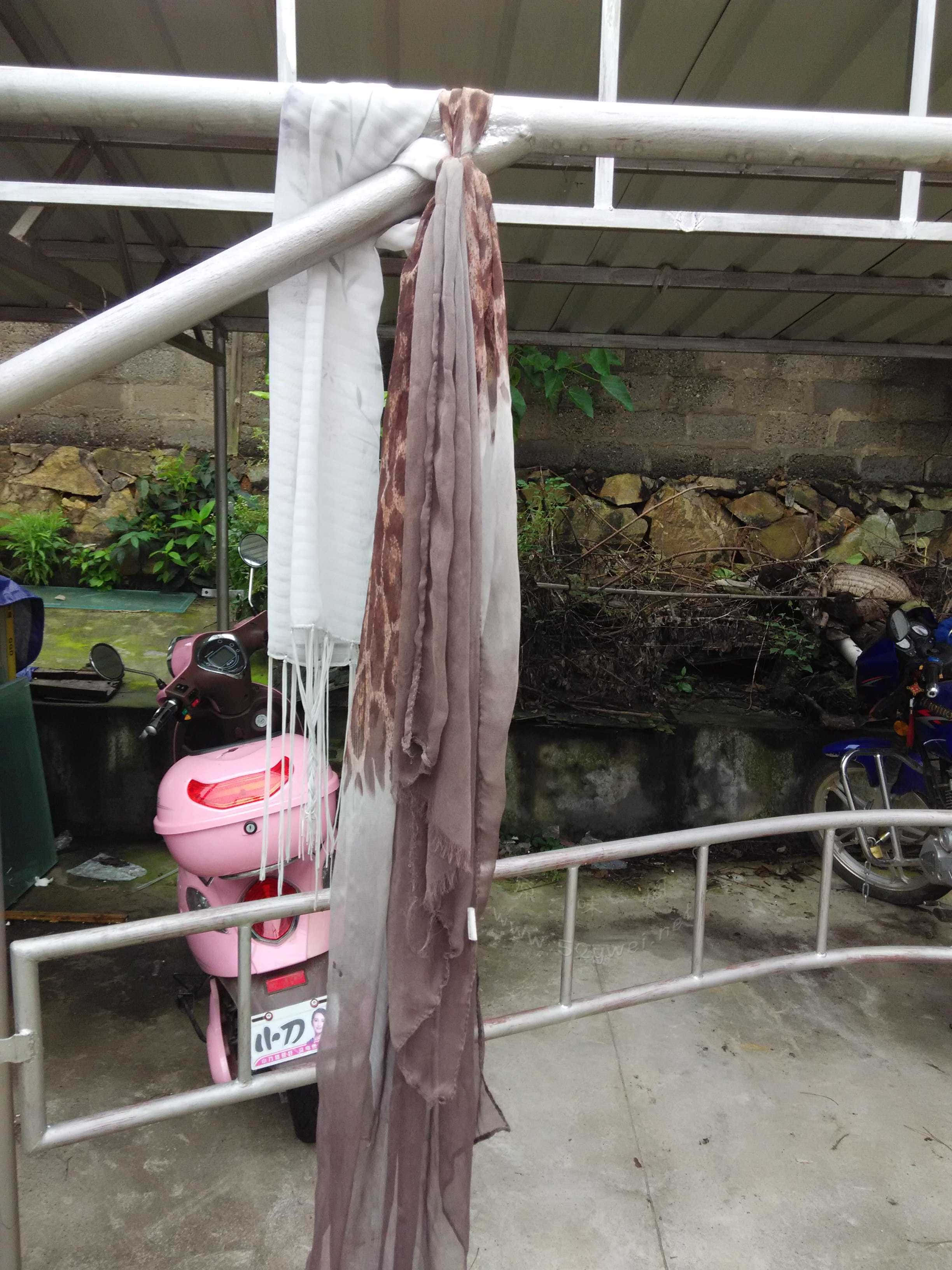 丝巾在慢慢消失!这两条丝巾已经挂出去半年了。