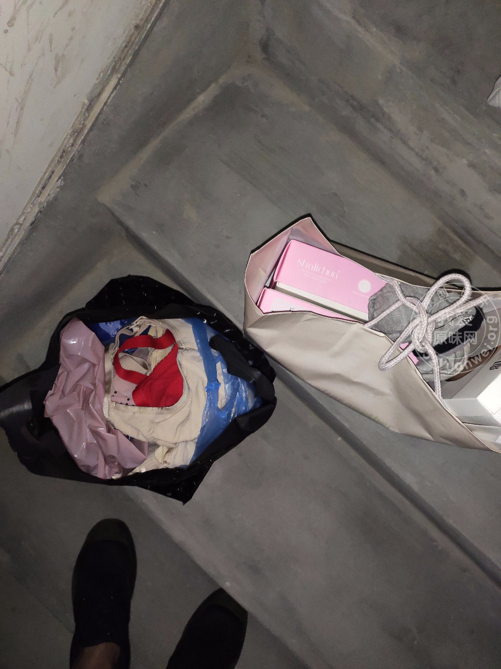 夜里爬楼26层意外发现两个垃圾袋,打开第一个袋子一看全是C罩杯的罩子,兴奋的跟个小猪仔一样闻了半天,shao妇的奶香味扑鼻而来,忍不住弄了一管,打开第二个袋子一看全是冬天的平底鞋,兄弟们看图,多多支持
