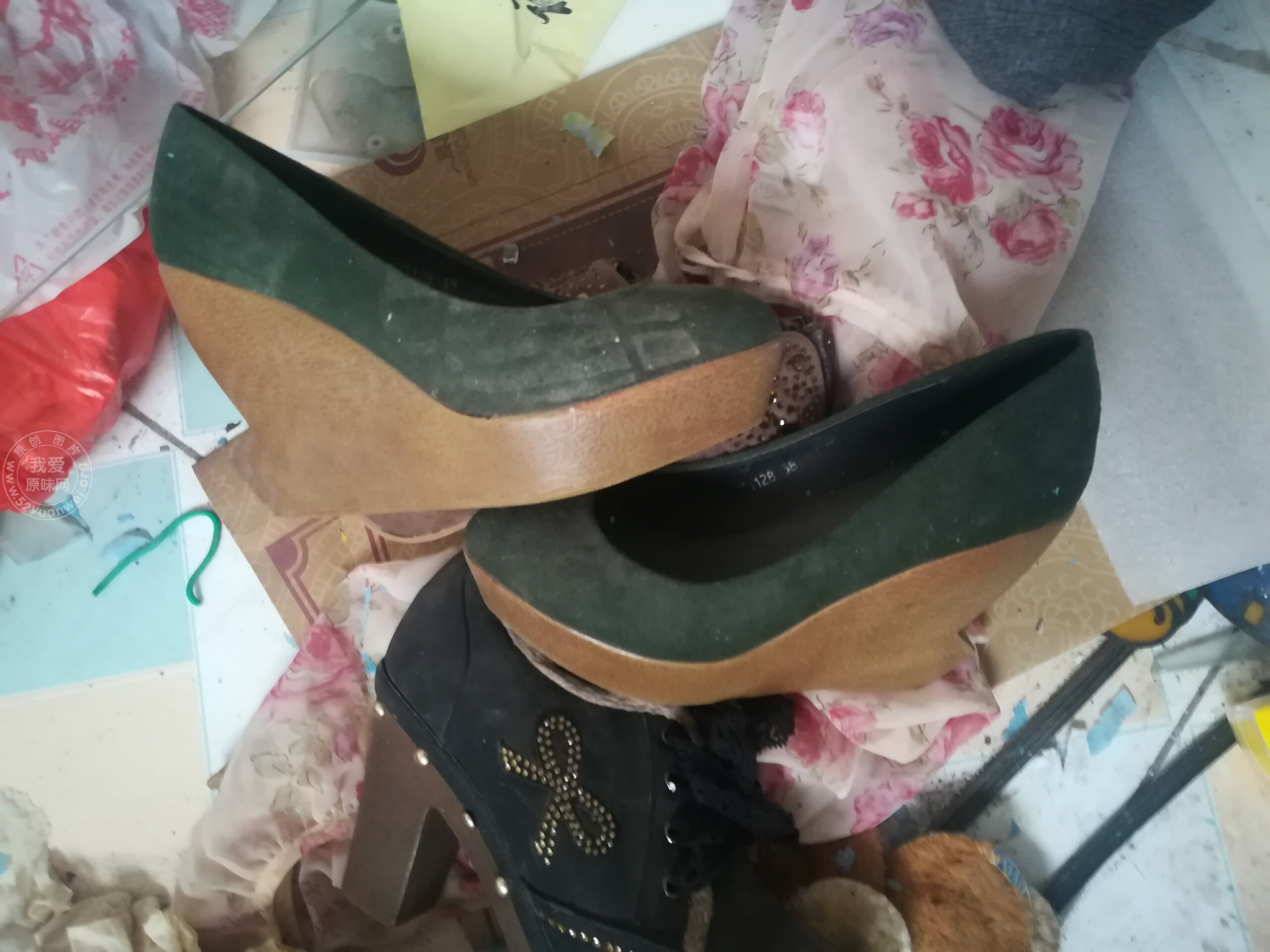 在楼房里发现的几双高跟鞋,样式多,颜色多