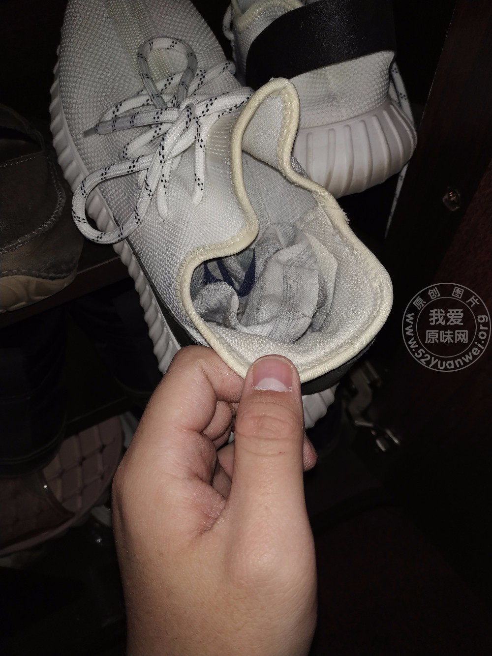 这次来了发现外面没有放鞋子,有点小失落,以为没有了,再一看在鞋柜里面,嘻嘻嘻嘻,还有原味袜子,真的太赞了,话不多说上图,鞋子太多了,以后慢慢享受,里面这个袜子硬壳了都,上手一吸,唔,太香了,是那种不是化学香味,就是淡淡的馨香,这个鞋是挺大的估计美女是175以上,运动性美女,有机会拍拍真人,前提是大家支持我