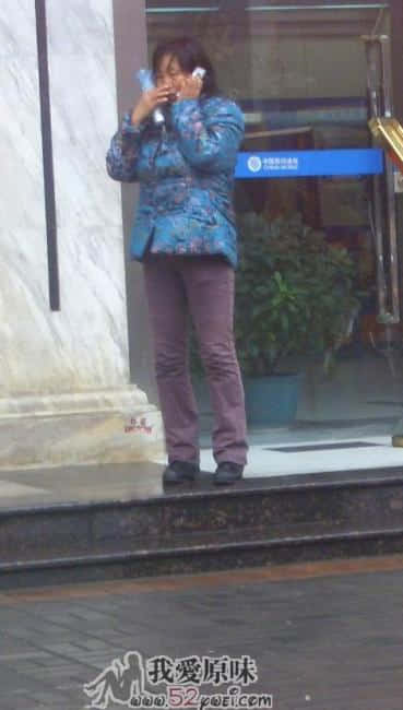打电话的缎袄妇