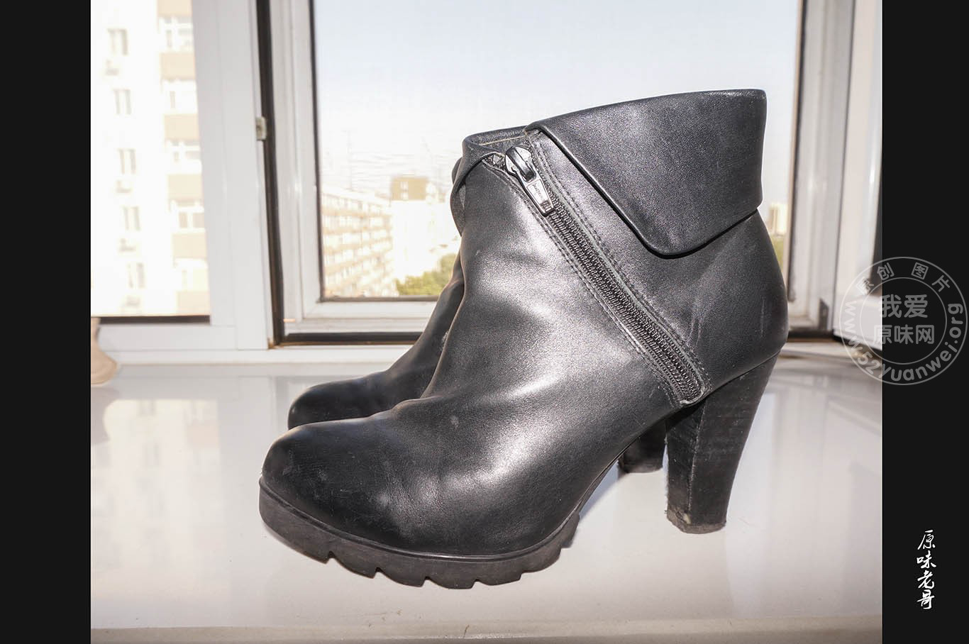 低腰高跟黑靴子