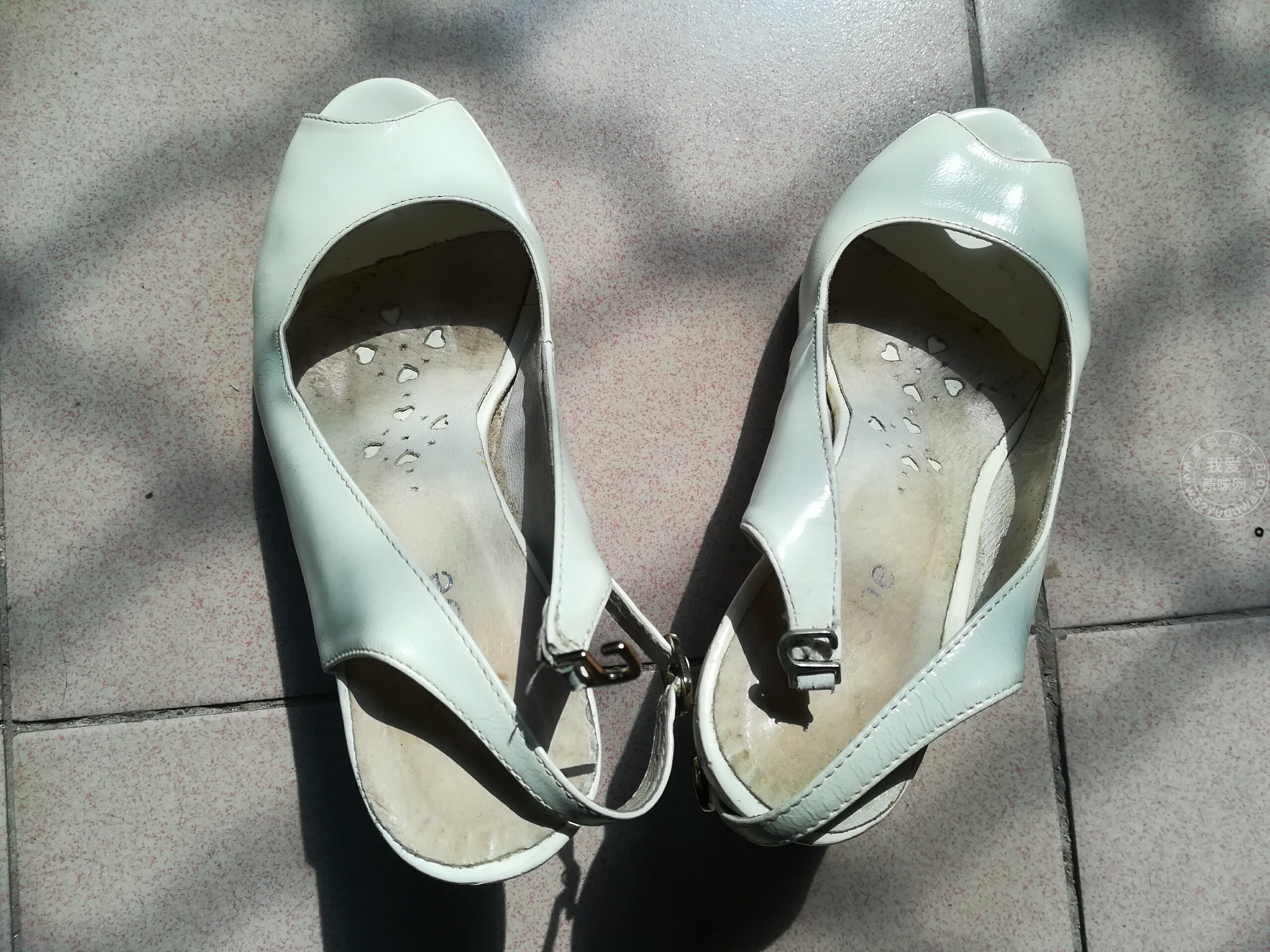 一双白色的鱼嘴高跟鞋
