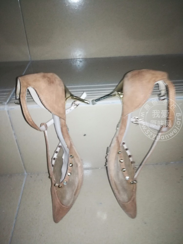 中午午休,收获公司白领棕色绑带尖头细跟骚鞋