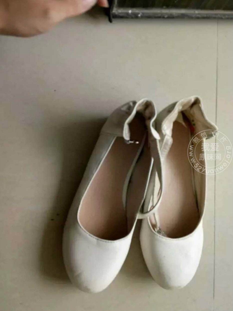 一双白色的绕带平底鞋