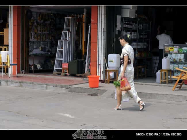 大街买菜回家的女人