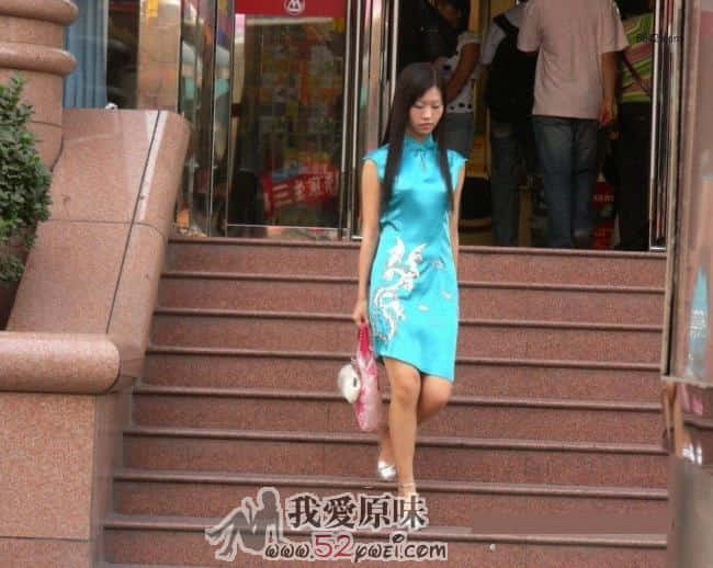 抓拍穿绿绸缎女人