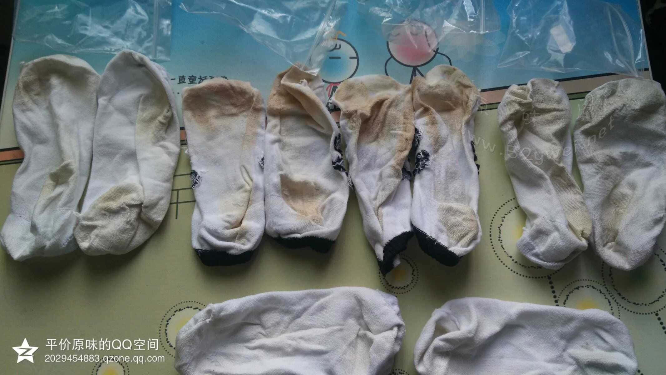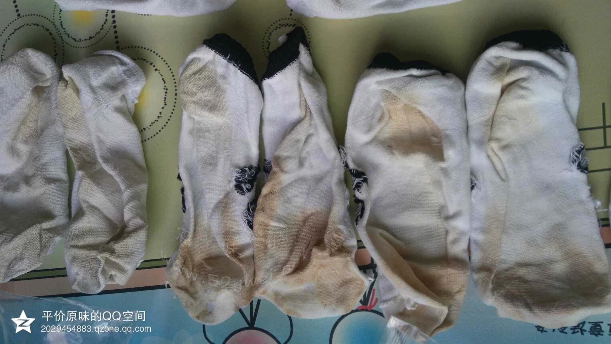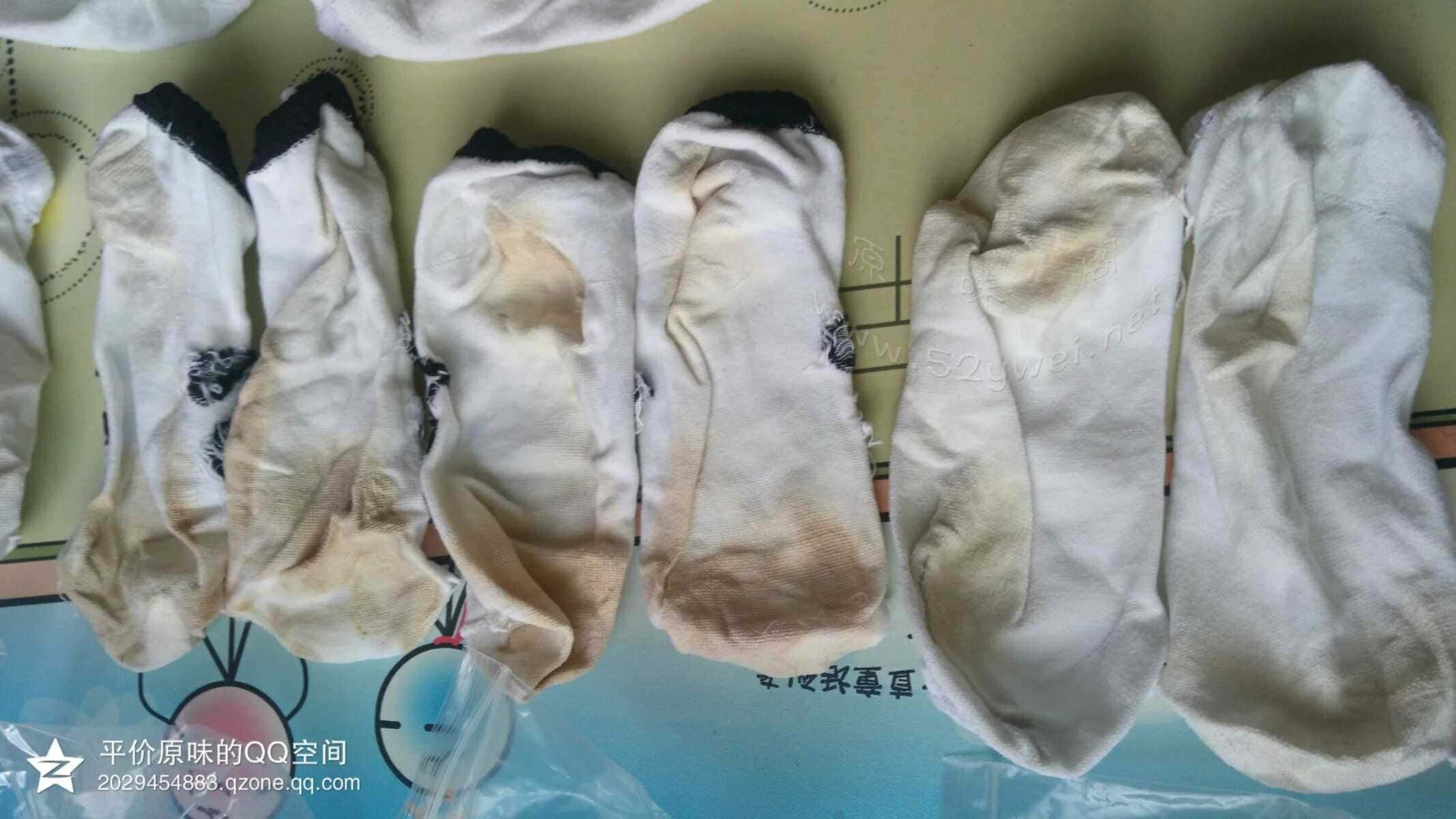 这3张图片是重头戏 这些袜子就是平价所开发初中系列妹纸穿的 由于初中那群妹纸喜欢穿那种运动鞋和帆布鞋 本来这两种鞋子穿着就不透气 而且质量也不是特别好 所以穿了的袜子 味道特别重 同好看看那棉袜的颜色就知道了 反正平价是受不了的 【初中妹纸只提供棉袜 适合喜欢超级重口味的同好 淡口味同好慎入 你会受不了的】平价也基本上介绍完了 同好也许就会有疑问了 你一个男的卖原味 我凭什么相信你 平价也空口无凭 那还是用图