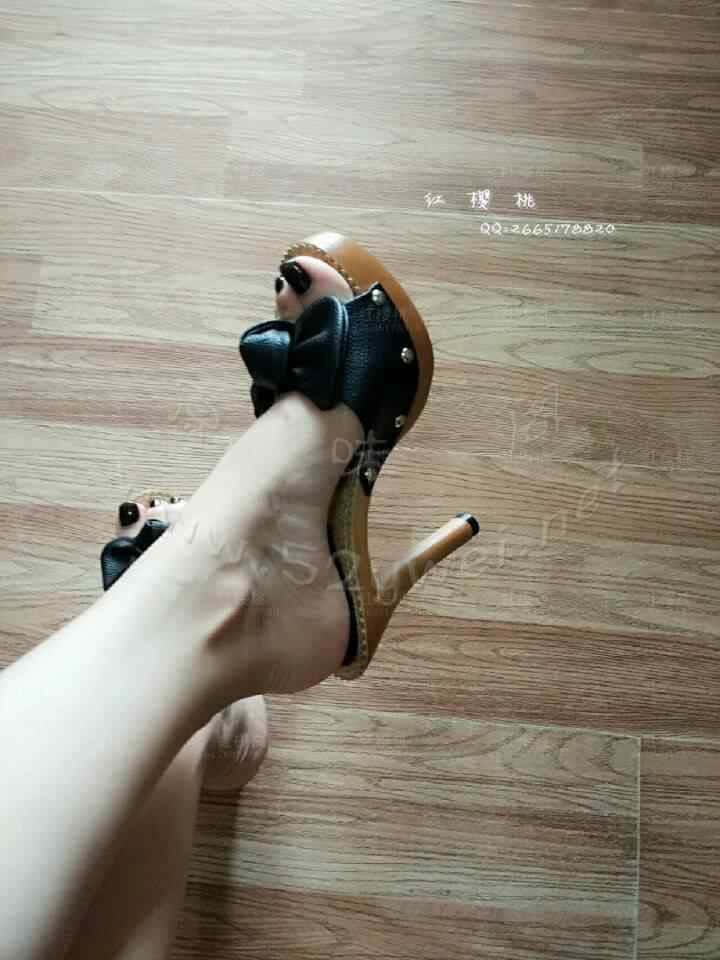 蝴蝶结高跟鞋拖~裸足小脚超美~