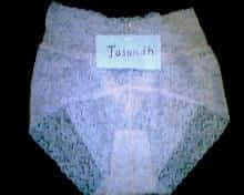 我上班的单位一个眼睛少妇,就住在单位上,单位办公楼后面有一个澡堂,有些人就在那洗澡,当然她也在那里洗.澡堂外面有个洗衣台,旁边可以凉衣服,奇怪的是只有她把衣服凉在那里(这个是我长期观察的结论)她经常把衣物袜子凉在那,有时候也有内衣,有兴趣的我都帮她收了,前后加起来共有7条NN.那种普通得不能再普通的就没没兴趣咯.我想她肯定发现自己的NN被...现在她都不会把内衣凉在那里了.今天先发两条上来给兄弟伙分享.剩下的我会继续发的.