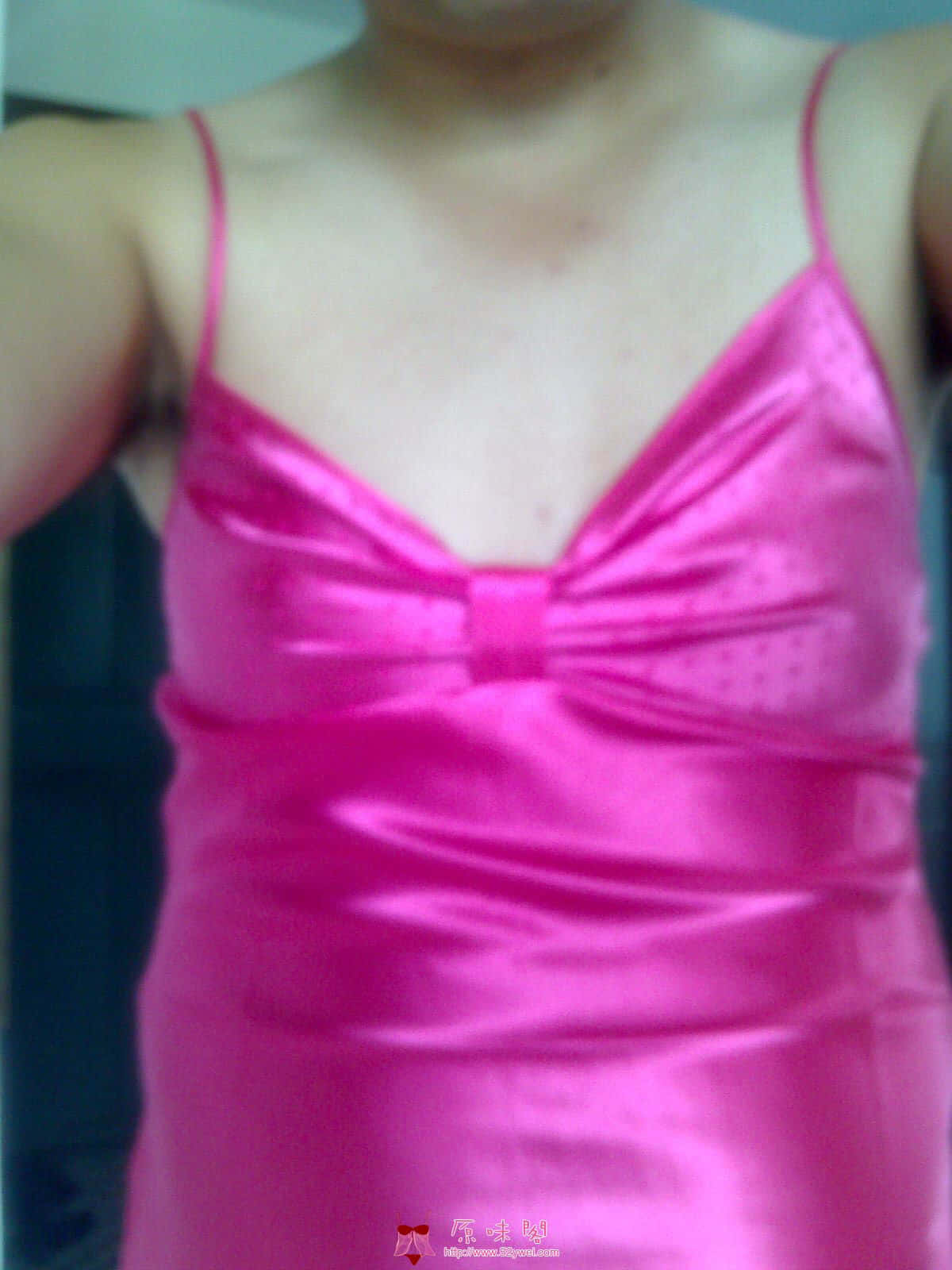 原创续发贴粉红真丝睡袍吊带两件套