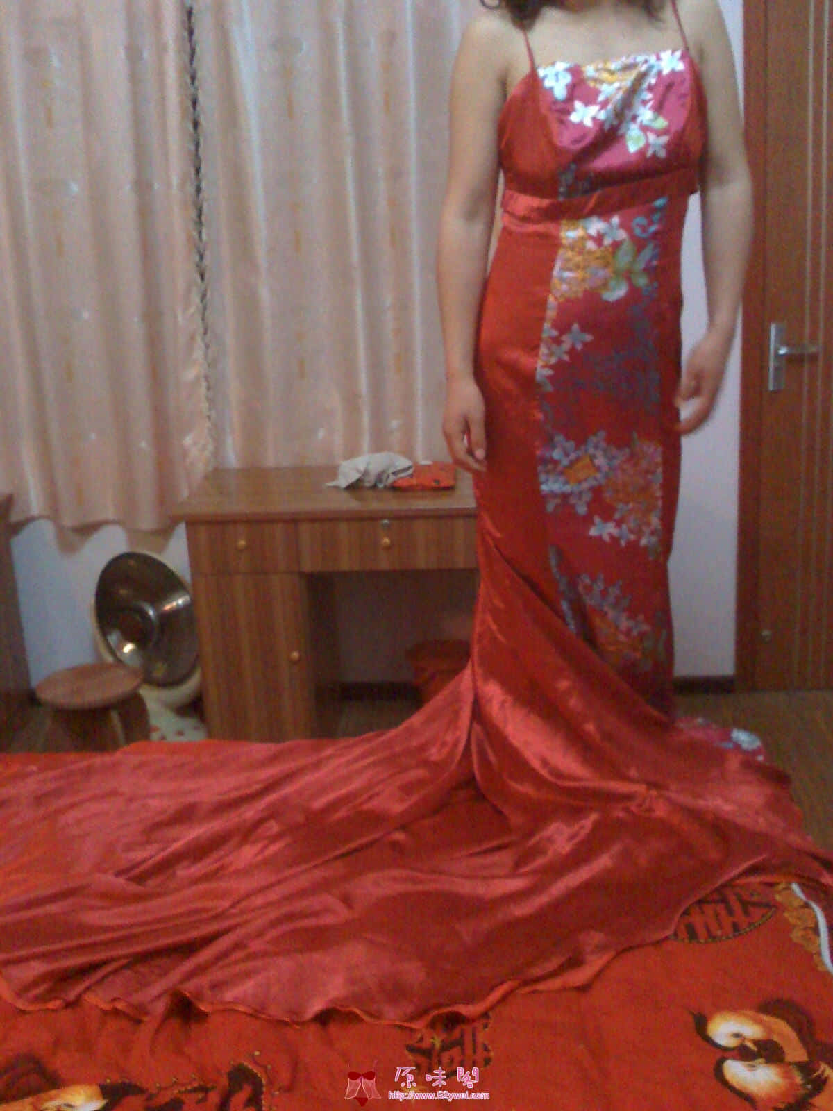 八一特供╋快乐夫妻︻︻同享红黄双层真丝吊带拖尾晚礼服 ...