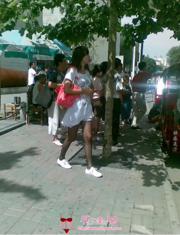 街拍穿丝裙等公交的少妇