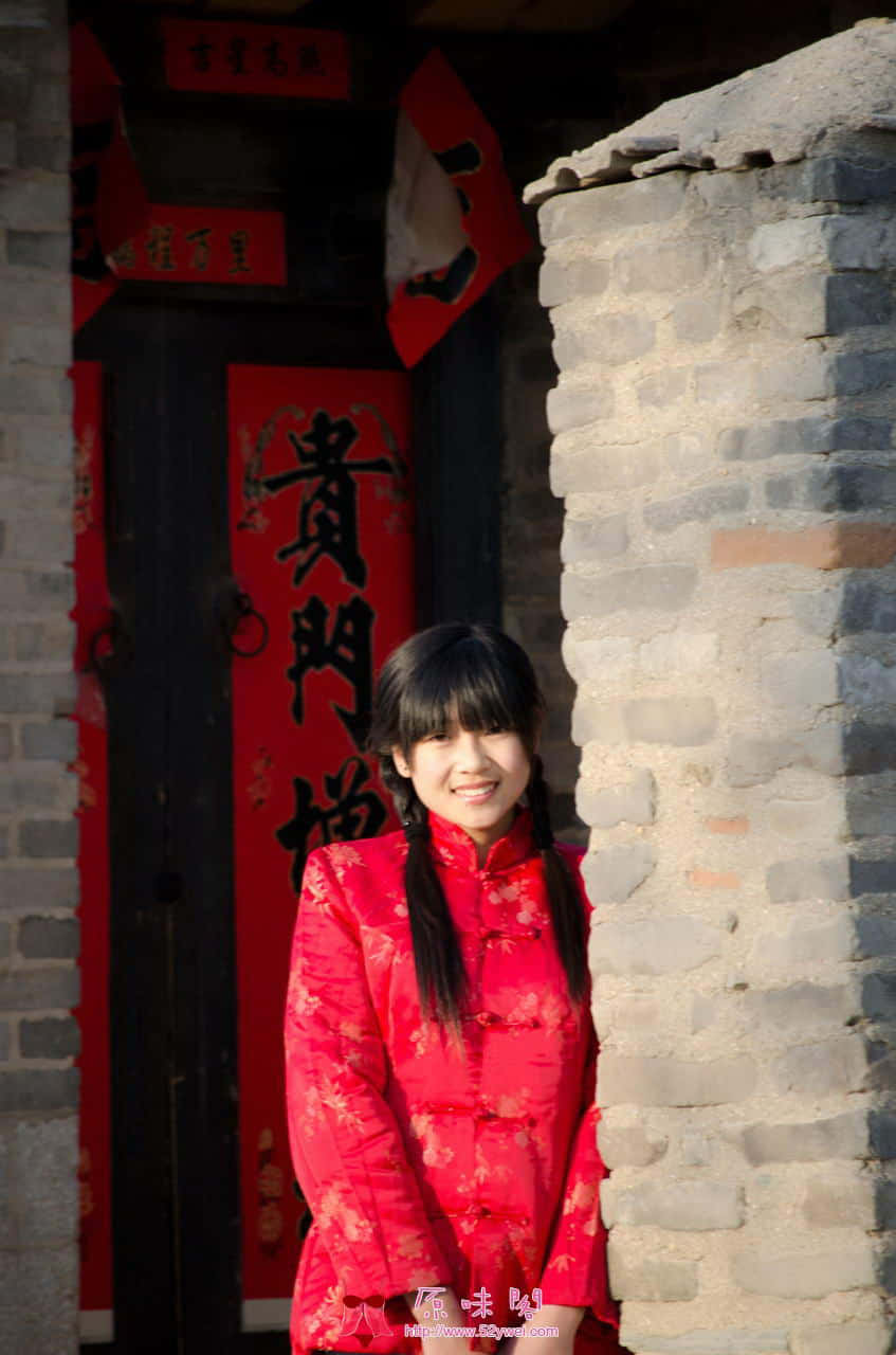 穿红色对襟袄的村姑(大图)