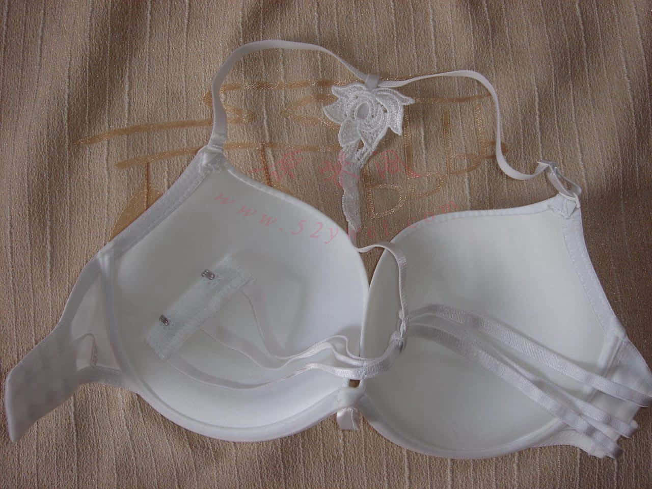 这次是老婆的一个白色光面的罩罩,很性感,大罩杯,特别是肩带,是夸脖式的,别有一翻风味,很挑逗。可惜这件胸罩已经不复存在了,带子被我不小心扯断了,老婆穿了一段时间久扔了。大家觉得怎么样?多多发表评论,你们的好评刺激是小弟的动力!