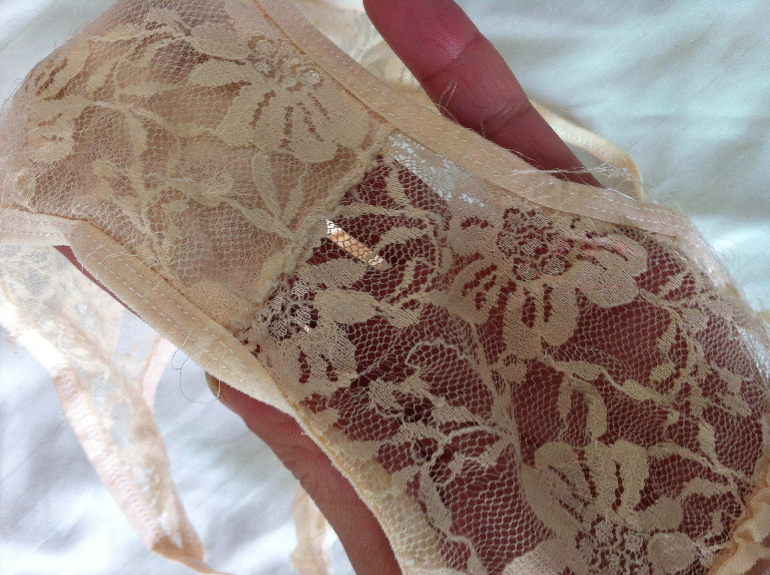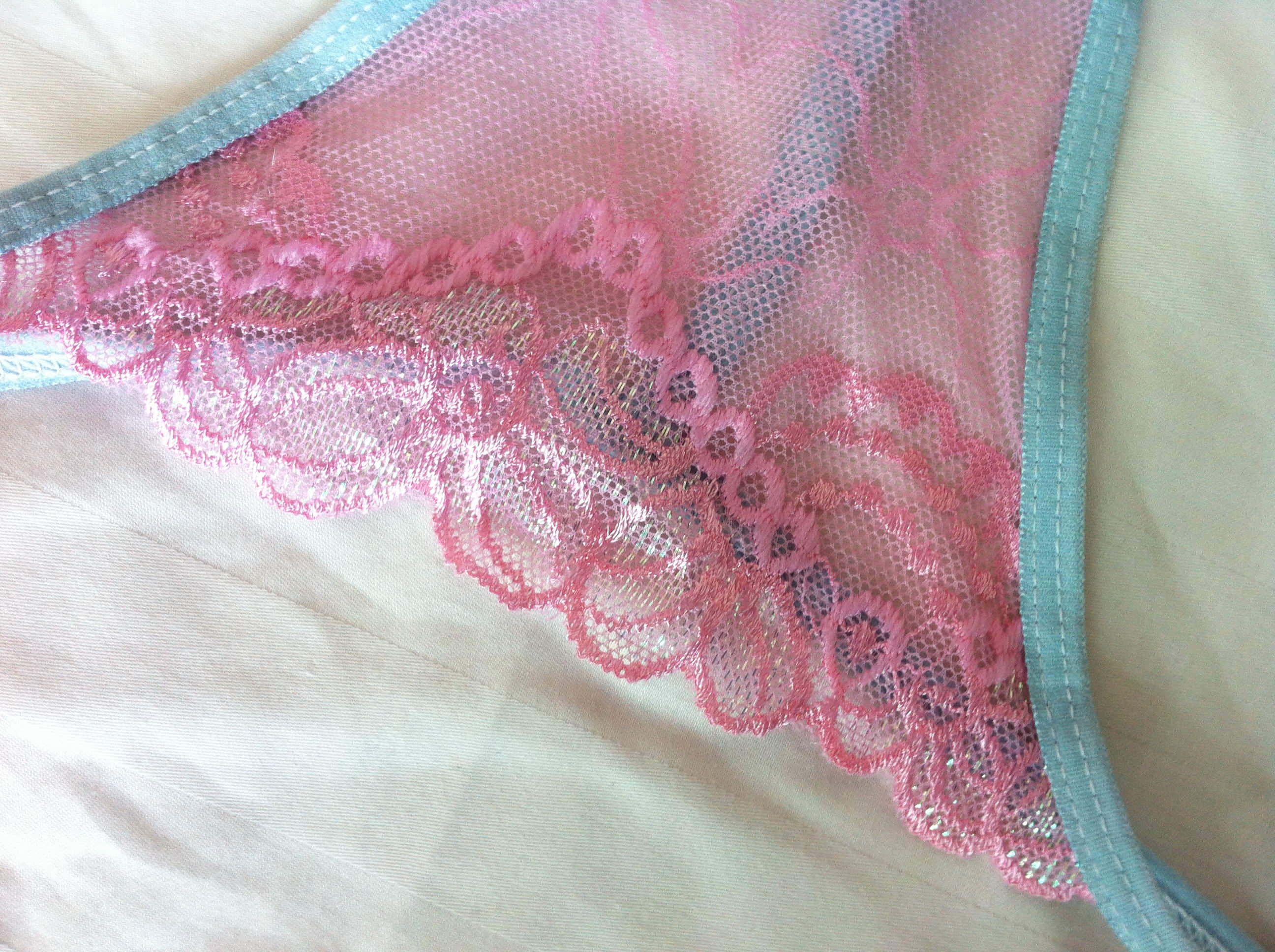 里发现了一个性感的蕾丝镂空T裤