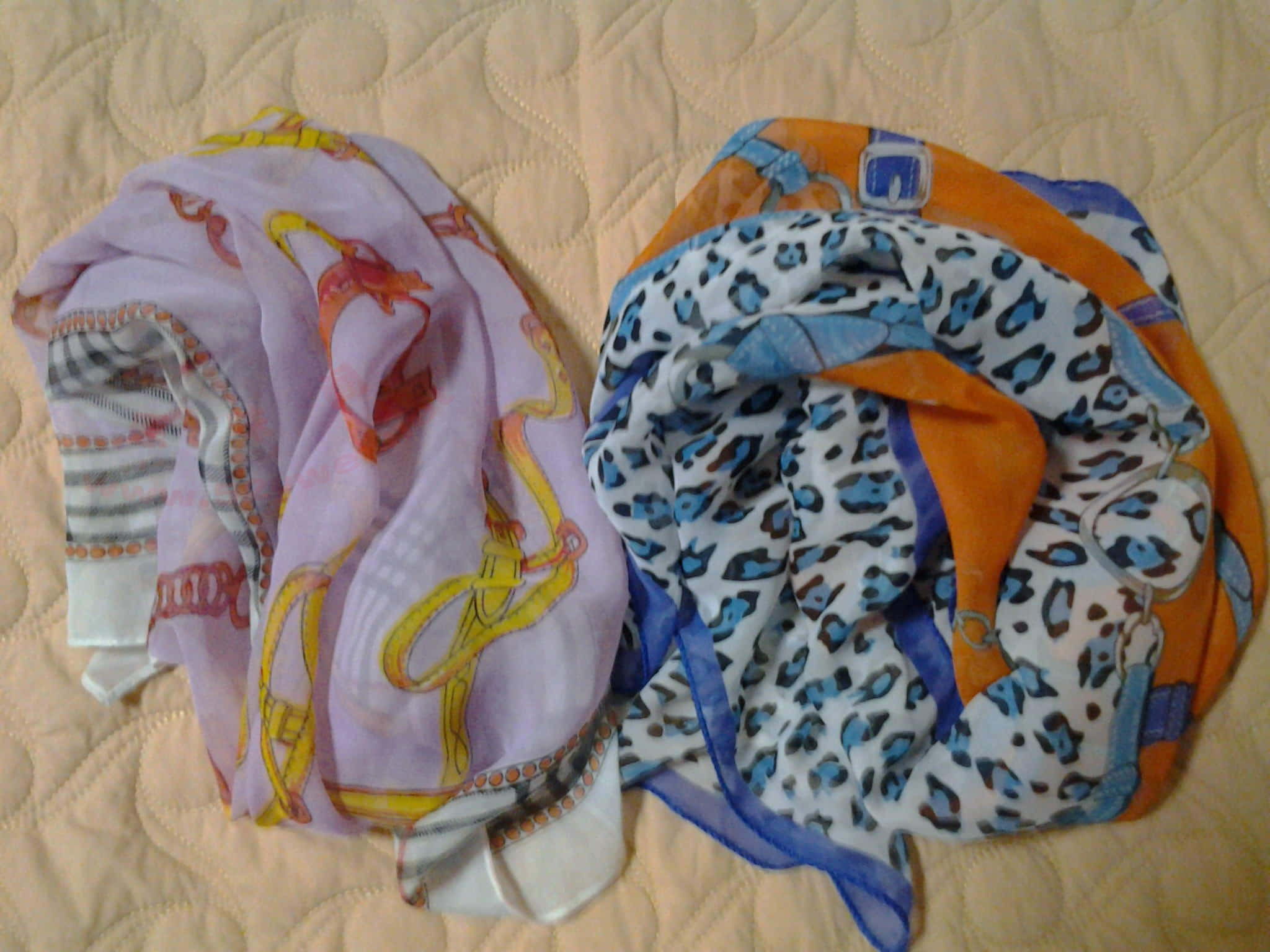 拿出一到两条丝巾,我喜欢用规格大概50*50的小方巾,所以有时候也会准备两条。