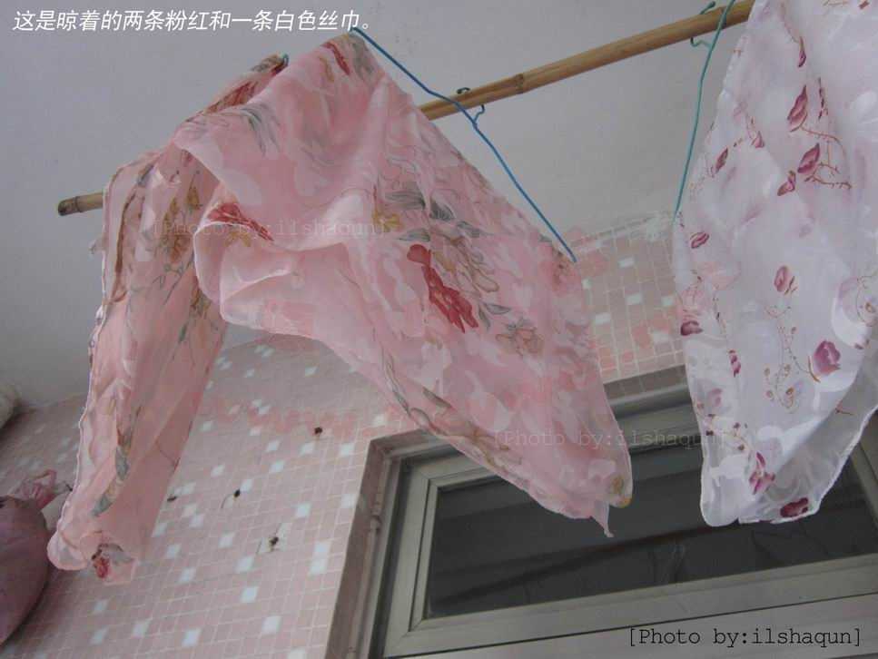 | 昨天到朋友家做客,他的儿子出生刚一个月,小屁股对纸尿片过敏,换过几个牌子,棉质的也不行,红疙瘩一大片的,宝宝妈妈买了很多丝巾给小宝宝做垫巾,丝巾是很柔很透的那种,直接让丝巾贴着小宝宝的屁屁,外面再包纸尿片的,把丝巾塞在里面,小宝宝的过敏很快消退了。 | 很想拍丝巾被垫在里面的照片,可是朋友家的老人家说小孩子不过百日不要拍照片。那就只能拍一下那些可怜的丝巾的照片了。这丝巾用来糟蹋其实真的很爽,很柔,很舒服!后来问朋友在那里买的,朋友说是在一家丝绸铺买的,也不便宜,60块一条。准备改天去买几条回来玩,当然,如果可以去朋友家里解救些回来就更好了。