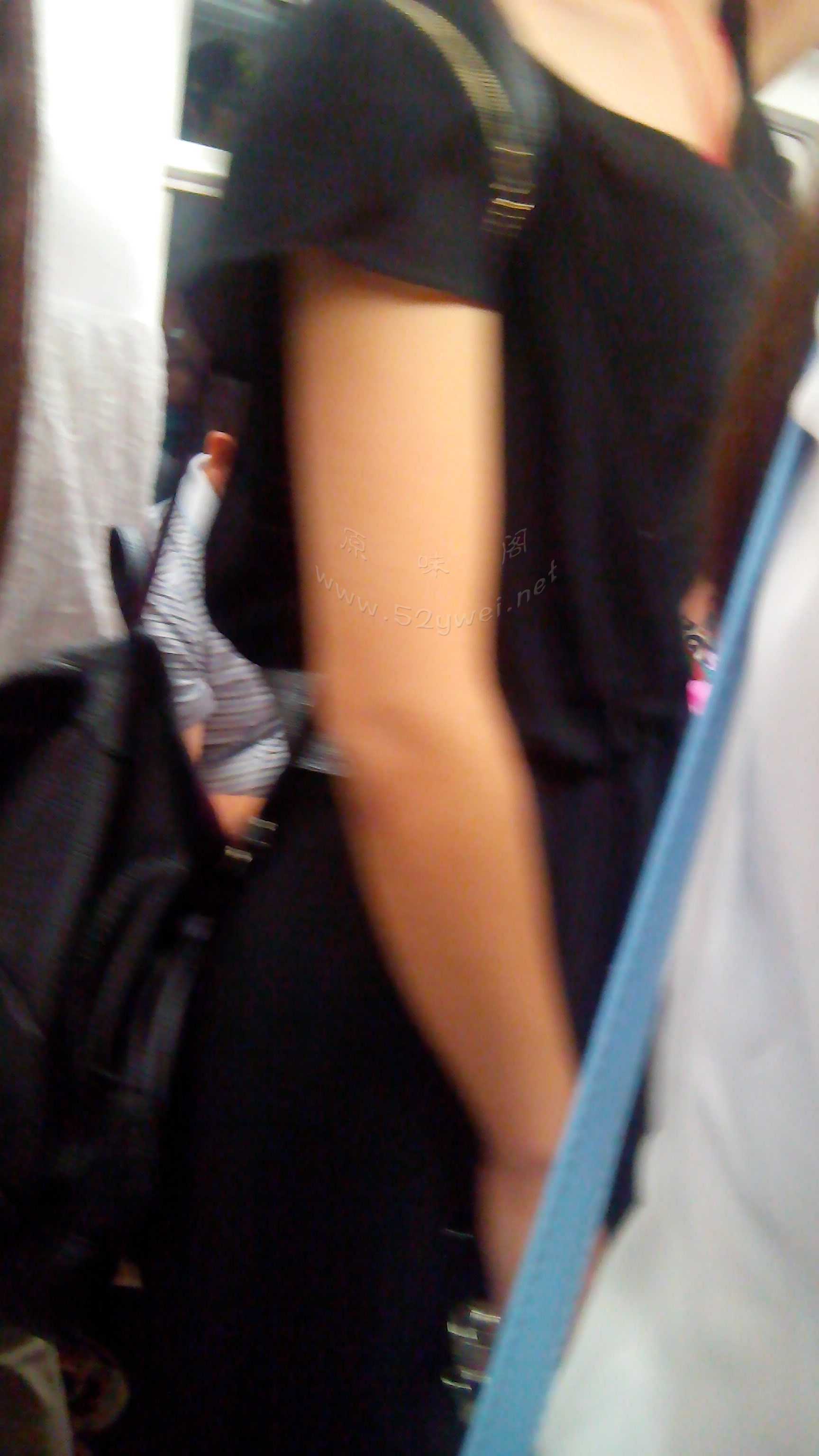 偶然发现一黑衣女,胸部顶起很高,抓住车上扶手居然顶起衣服都是空洞洞的。