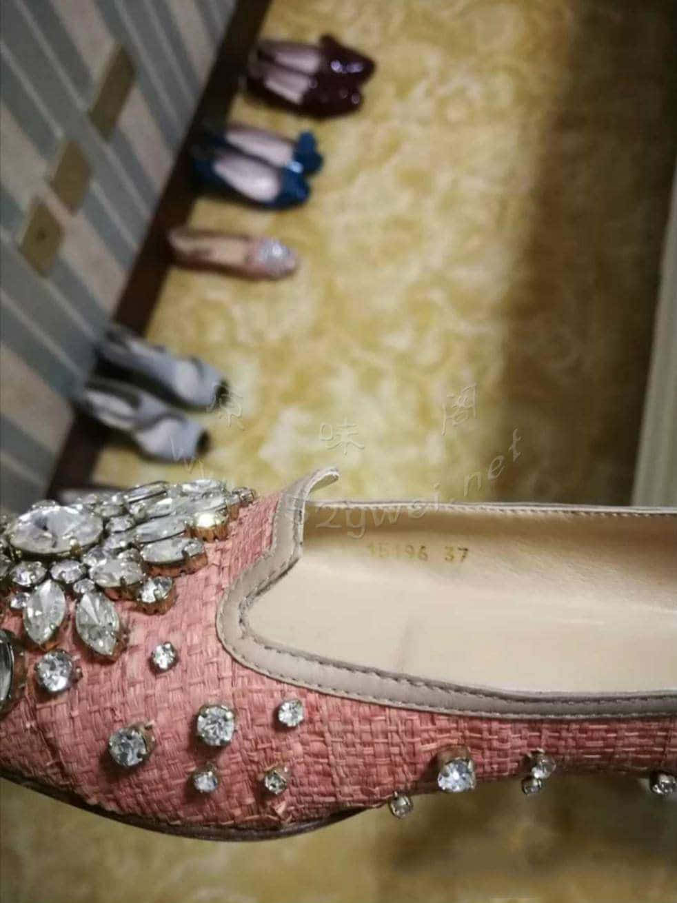 一双粉色的碎钻装饰平底鞋[5p]