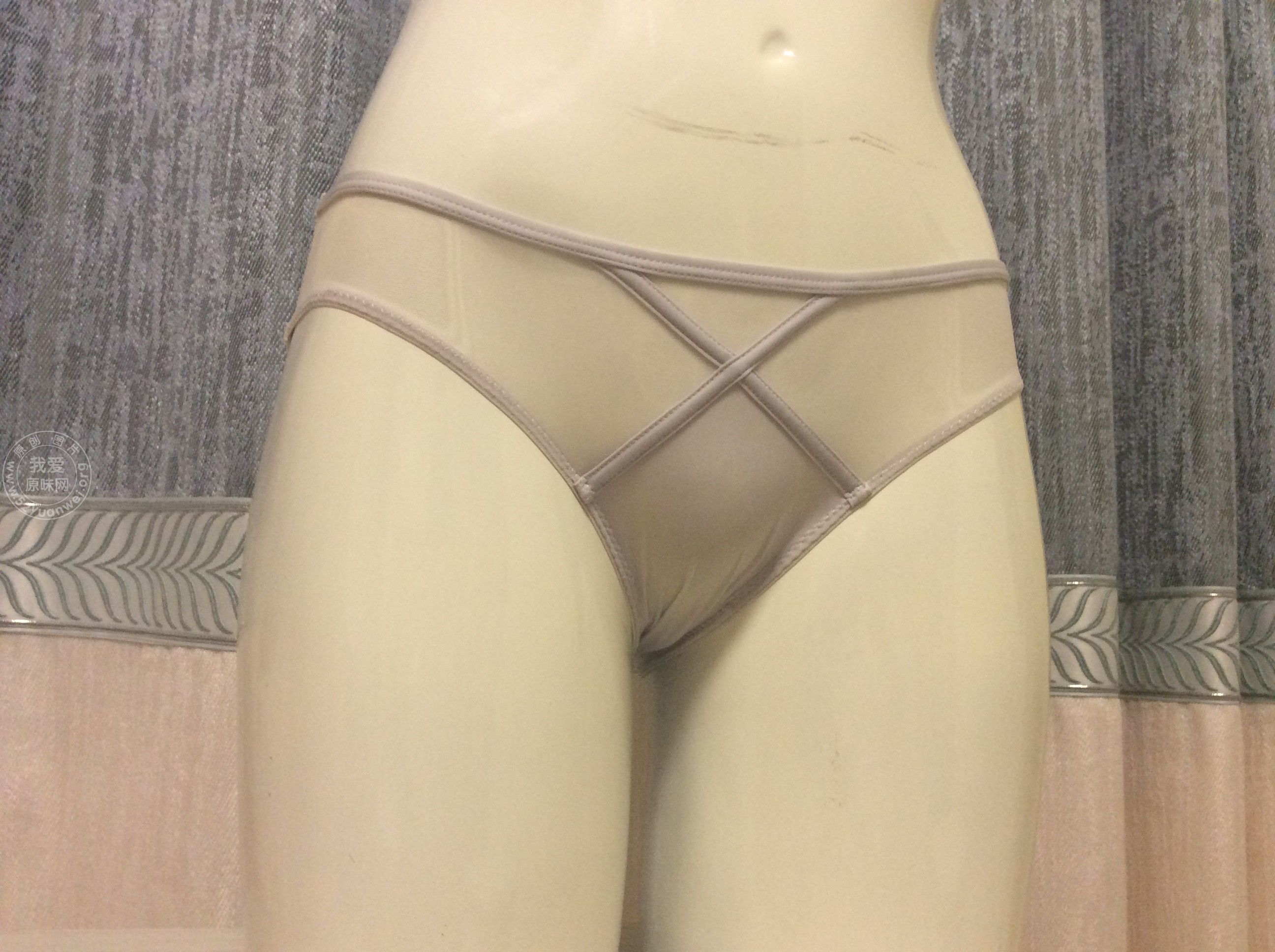 在居民楼一层放空调压缩机的铁栅栏里发现的灰色内裤,挺xing感!