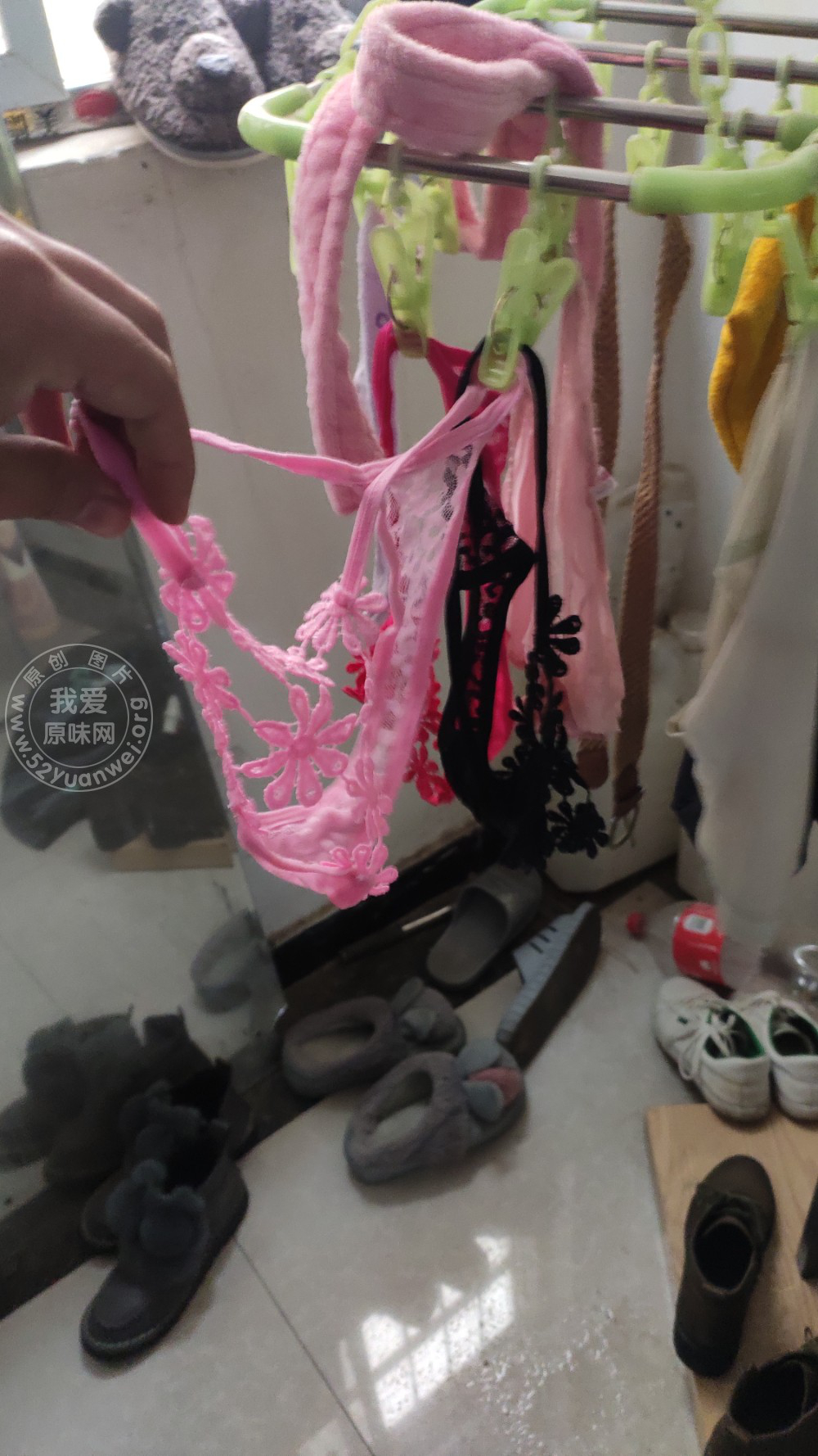 刚洗的三条丁字裤,摸起来湿漉漉的,真是骚邻居