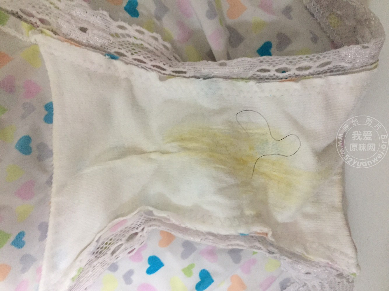 内裤上的分泌物已经干了,骚味刺鼻!