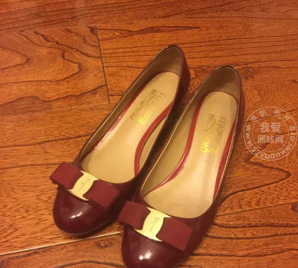 一双红色的Ferragamo矮跟鞋