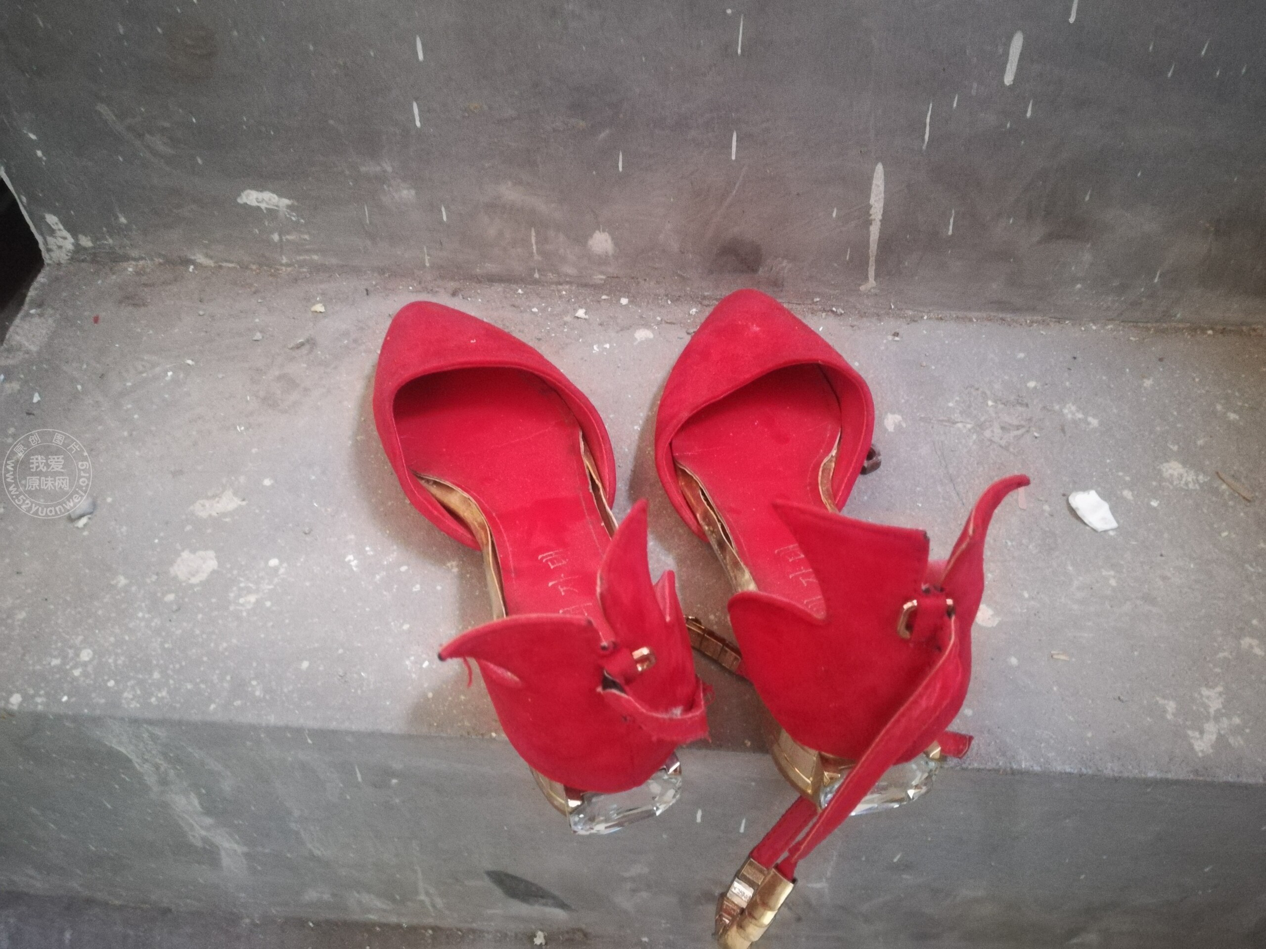 发现一双红色高跟鞋,像是新娘穿过的