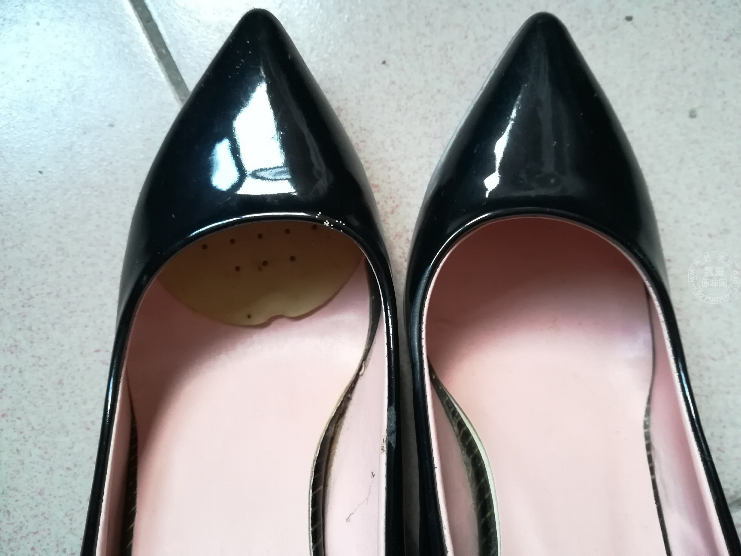 一双黑色的细跟高跟鞋
