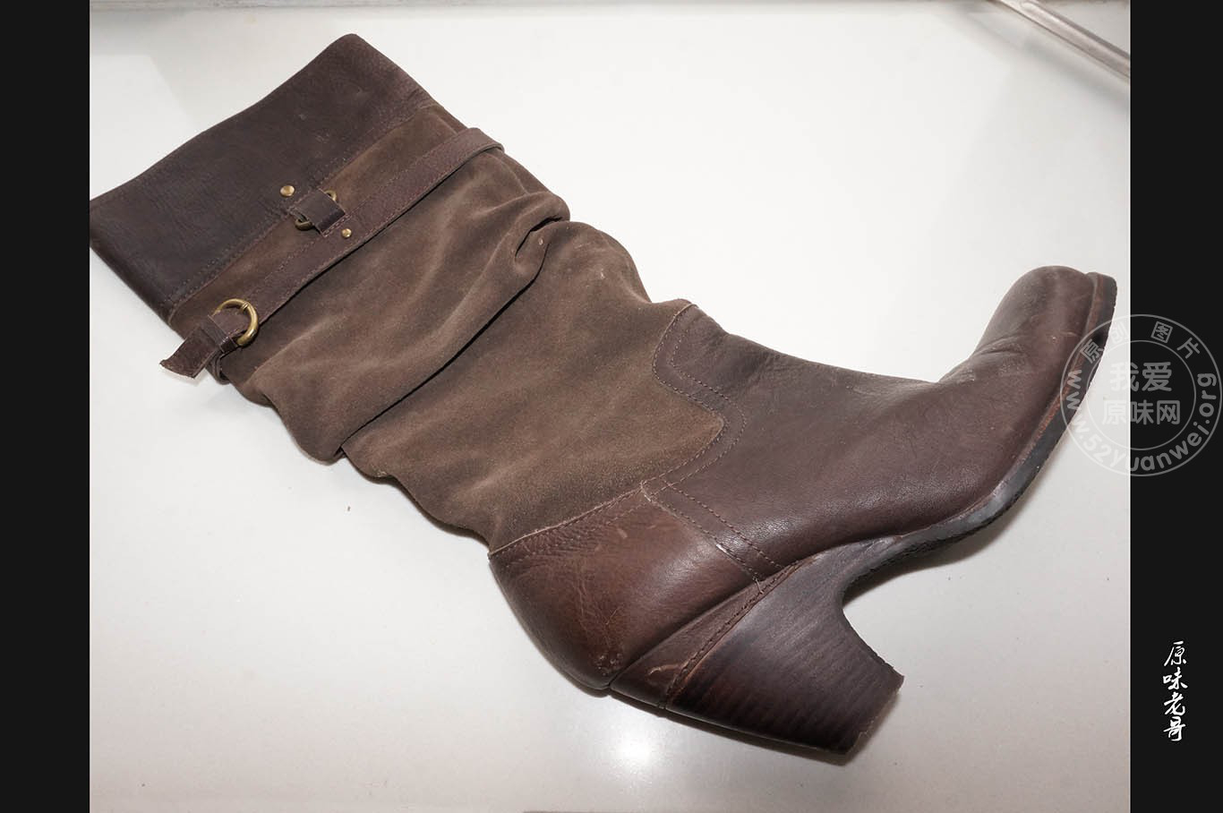 棕色粗跟骚靴子
