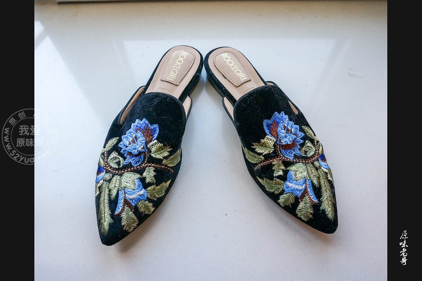 绣花黑绒面骚拖鞋