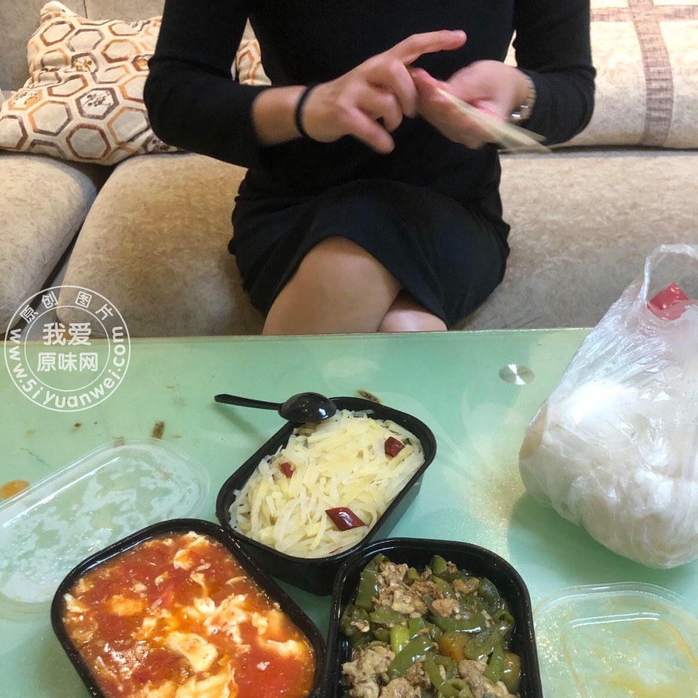 堂姐昨晚下班比较晚,没时间做饭了,我在外面打包了几个菜回来跟她一块儿凑合吃了。 不知道她里面穿的什么款式的内,嘿嘿