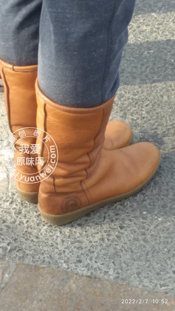 街拍菊黄色靴子