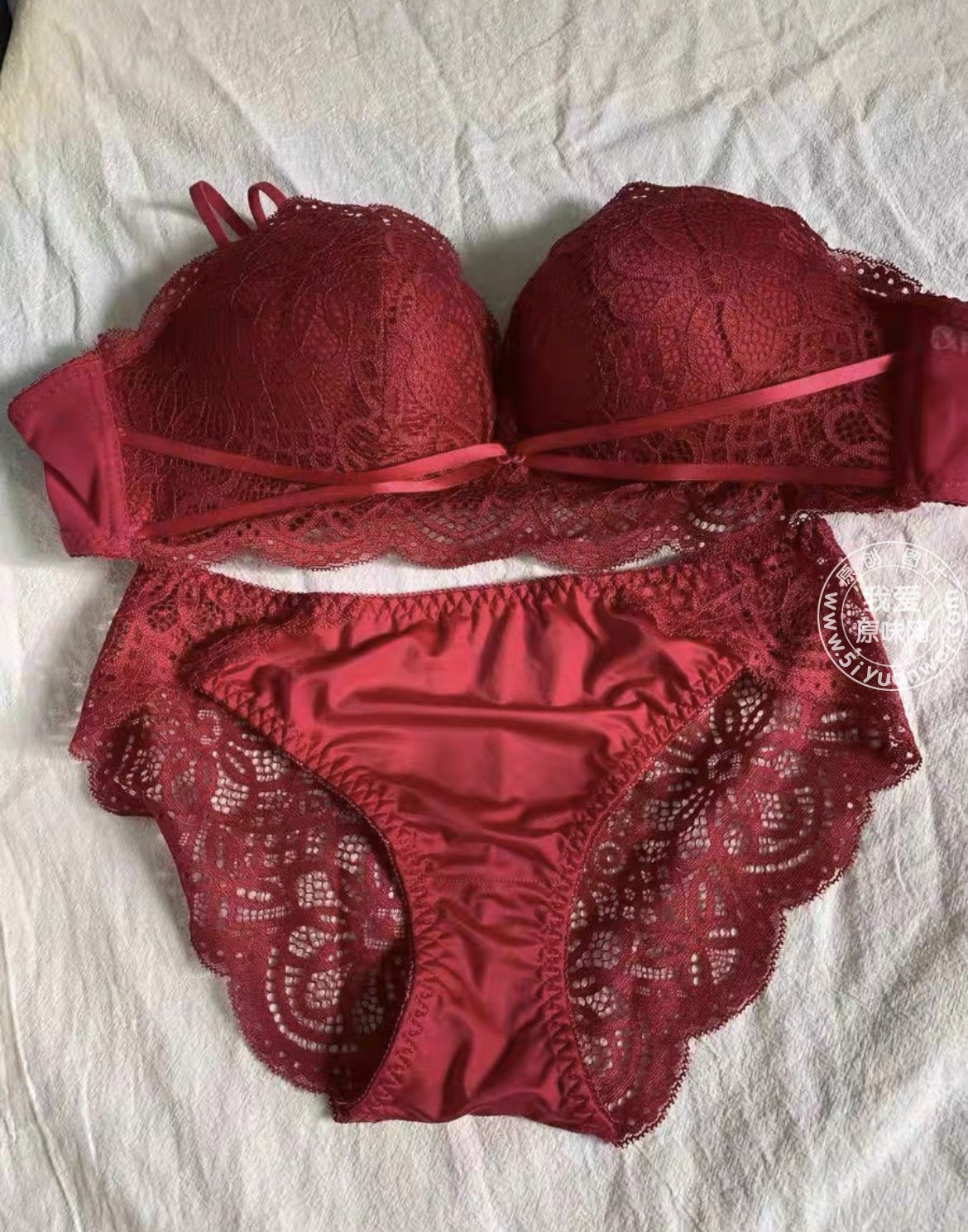 红色蕾丝镂空一套