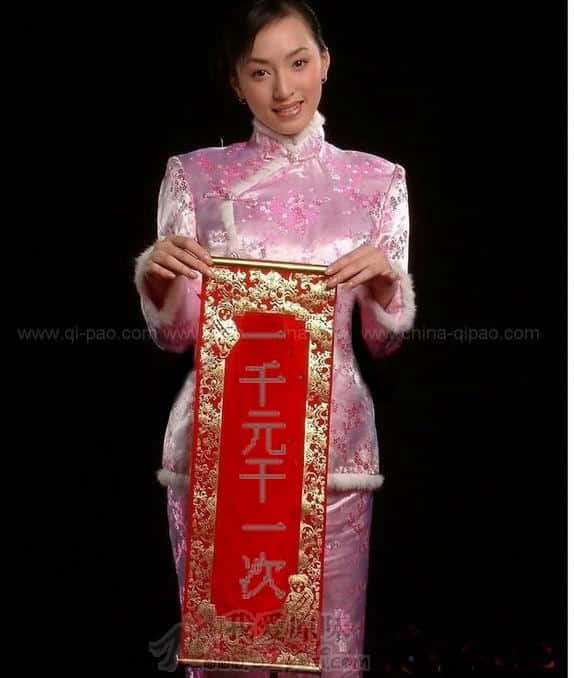 美女穿上粉缎袄推荐自己