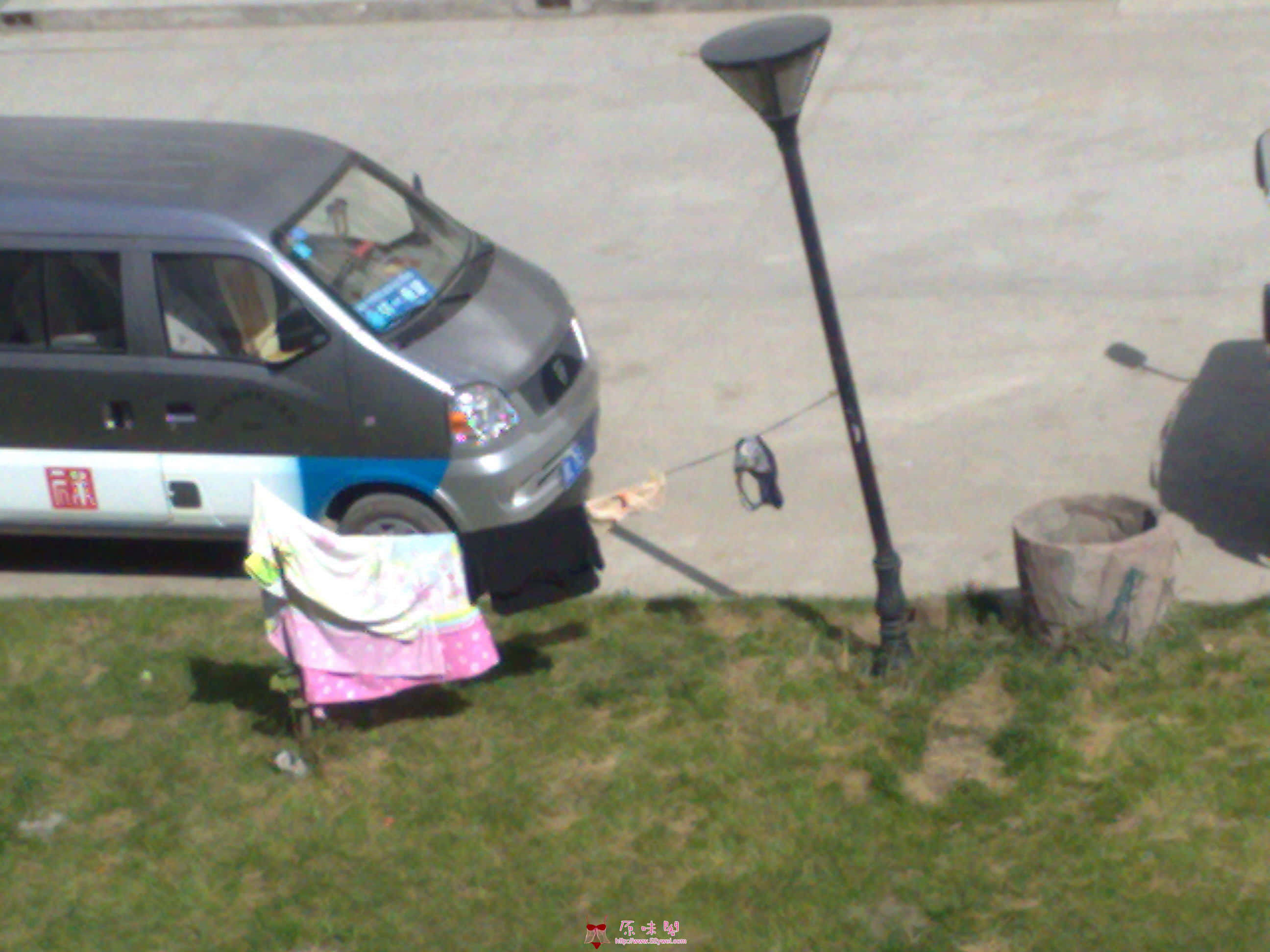 因为今天 是星期6 所以 起来的晚 早上9点多 要去街里买东西 到楼下 拿车 看到的 ZZ 在小区 绿化上 。。 。。 有一张是 我踩着 小草 过去拿车的 时候 赶紧拍的 有几张是 车里照的 因为 来来往往的人 挺多的 手机照的 当时没相机