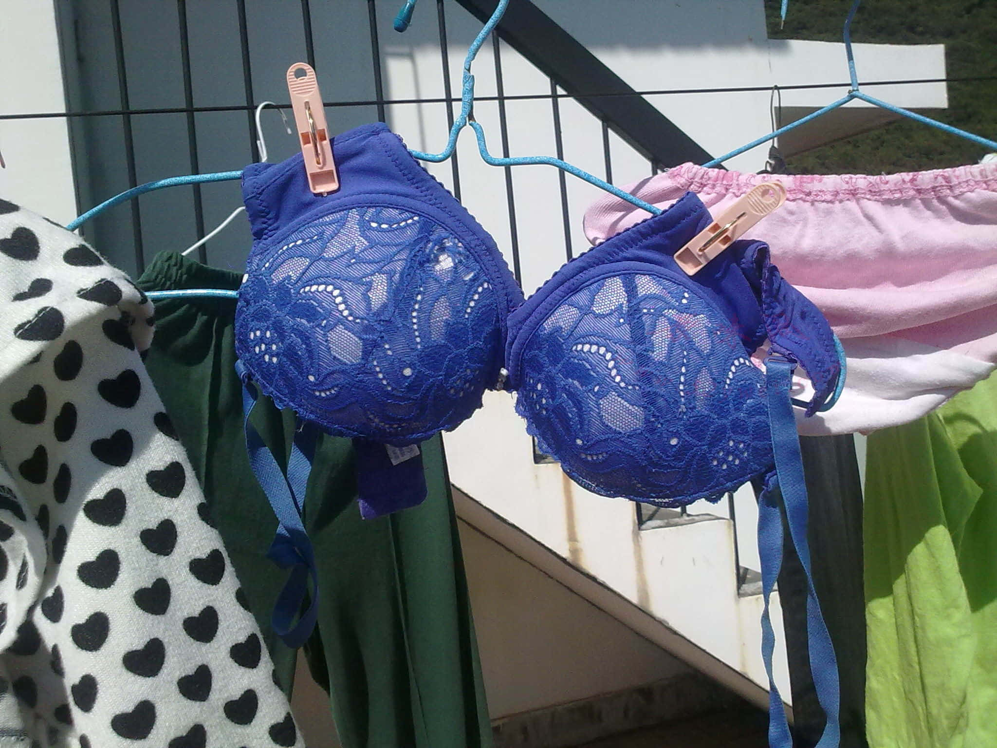 这是在深圳工作时拍的,公司宿舍在小区,大家都知道天台是狼必去的地方(你懂的),不去怎么对得起国家对得起人民对得起自己呢,那里的好东西海了去了。这一款文胸经常夜里晾出来的,好几次都贴着鼻子闻,那种女性特有的香味直钻心底,每一次都爆浆了,真是爽歪歪。。。 本人十多年的经历以后慢慢更新,敬请期待。。。