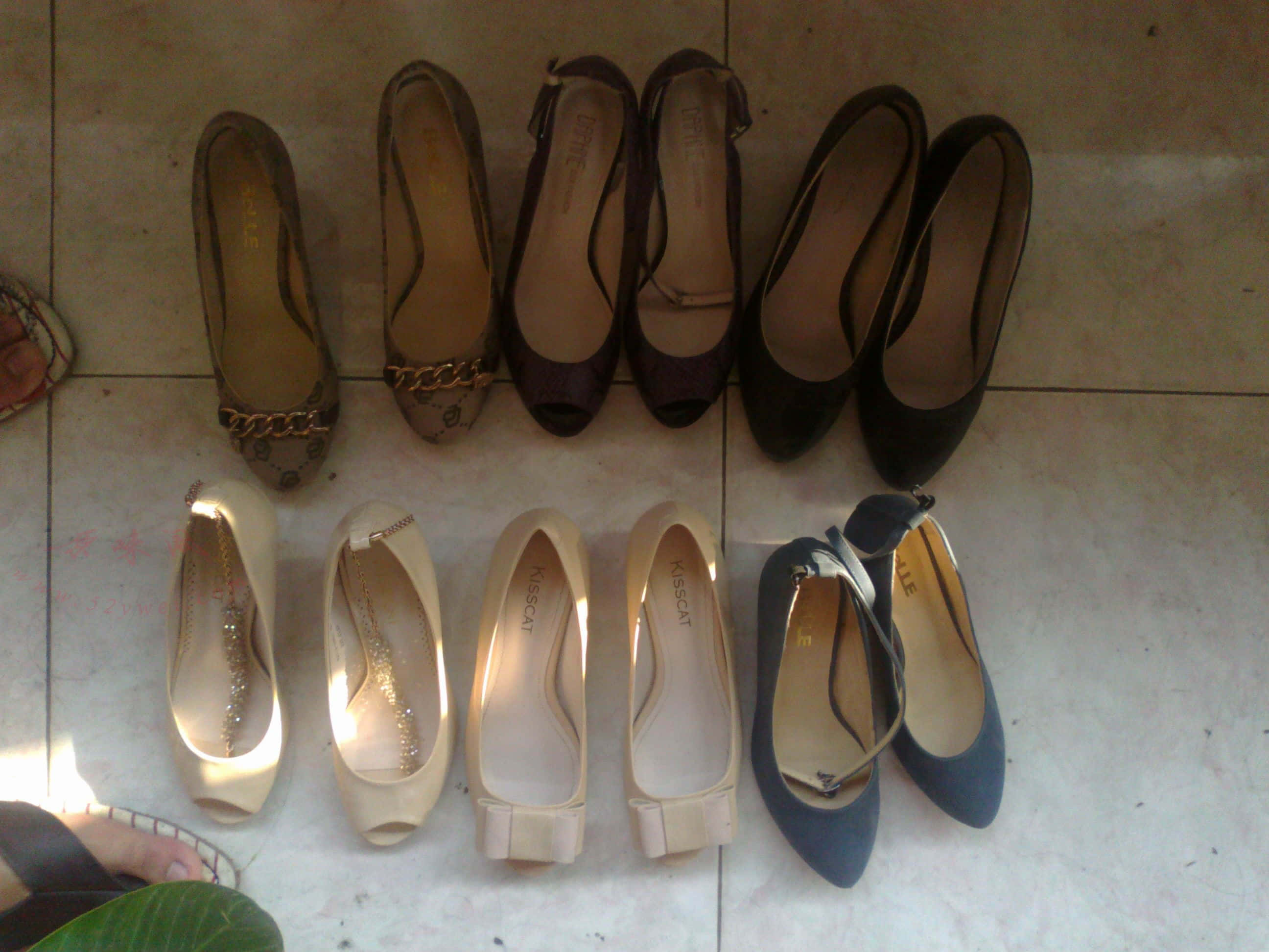 朋友女朋友在银行上班, 黑色的是沙驰的工作鞋 ,其他都是百利或者亲嘴猫的鞋子。