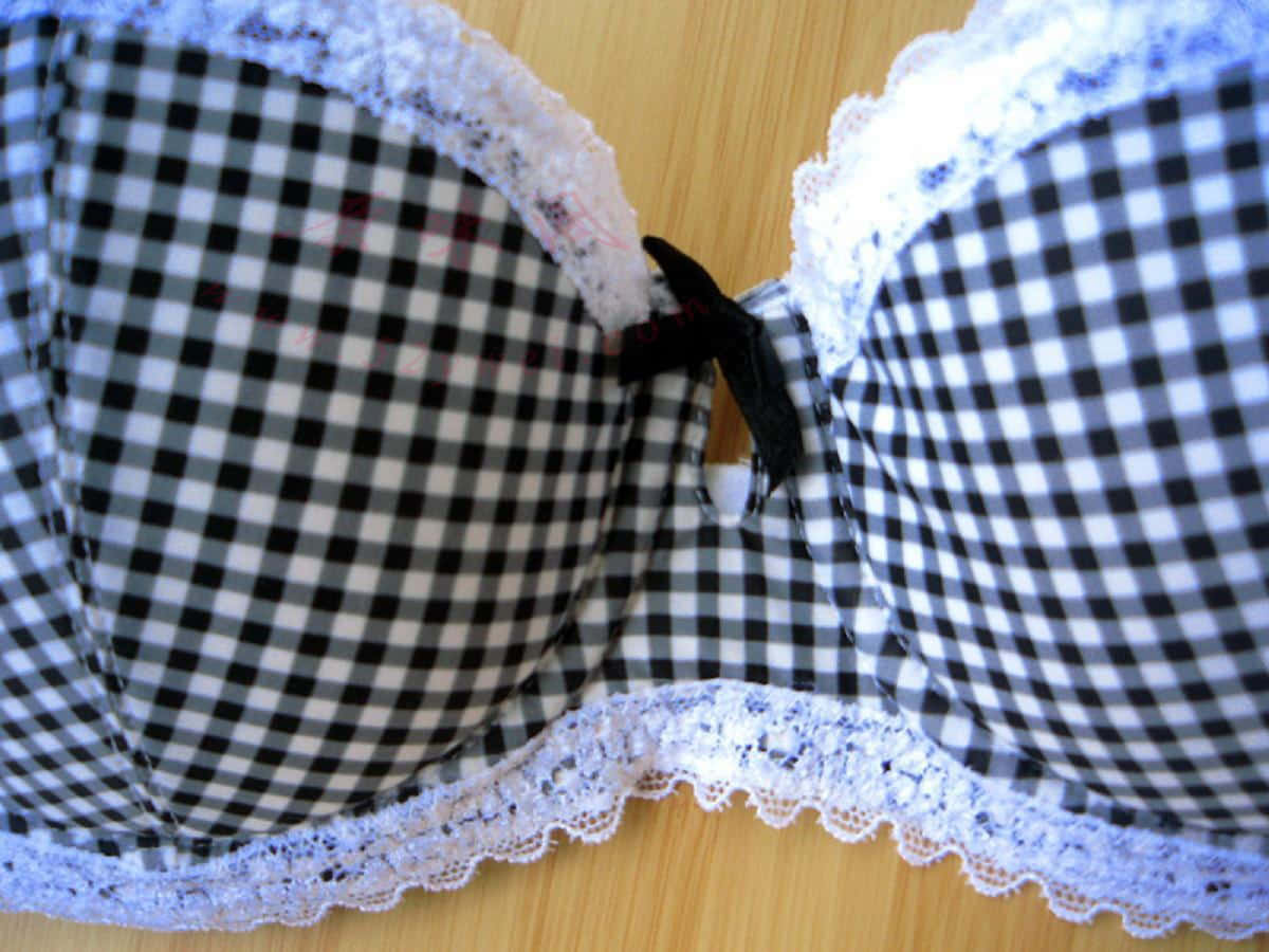 老婆的一套奶罩套装,格子图案,白色蕾丝花边,多图,很性感,很可爱,很挑逗!!!