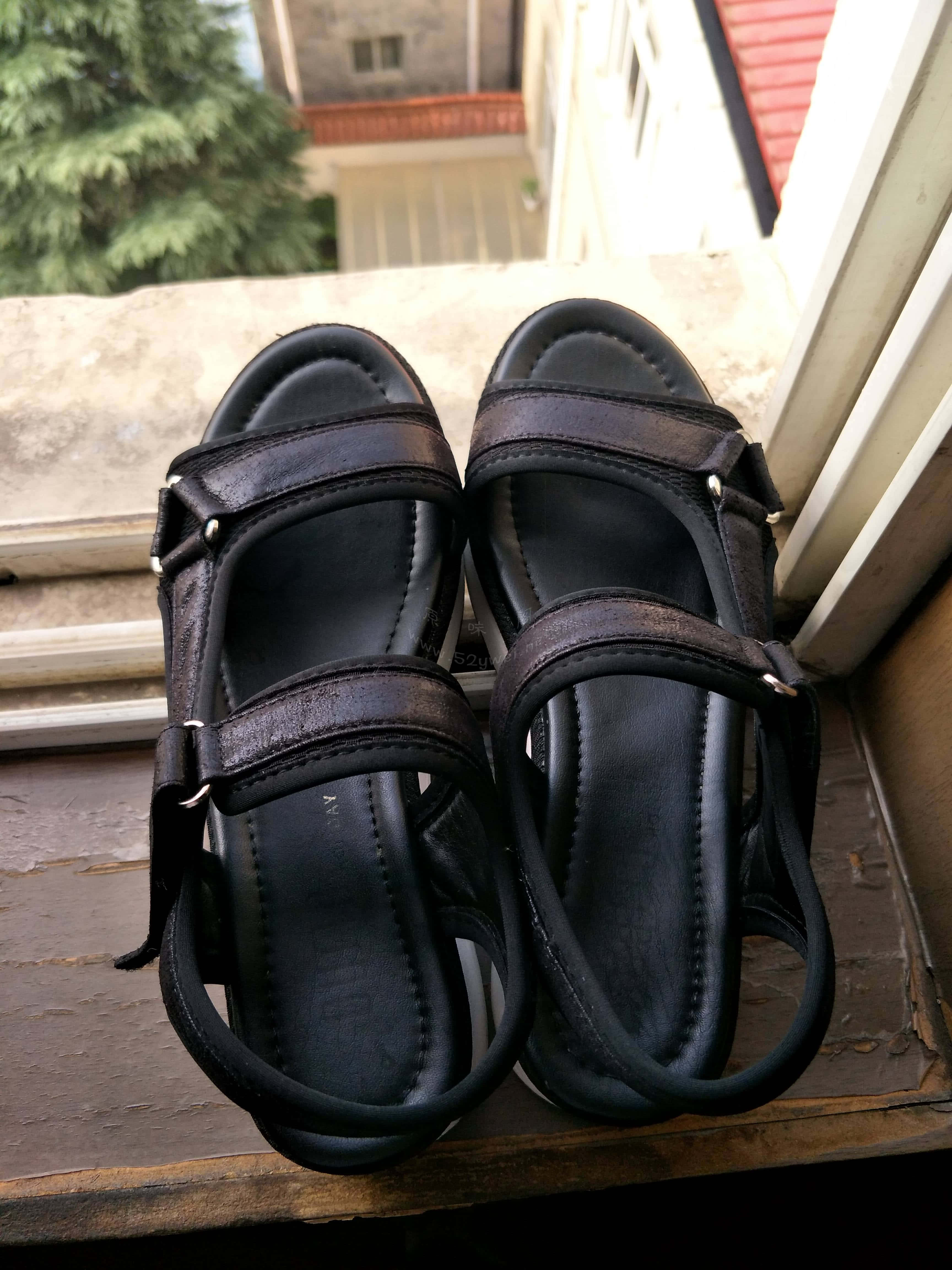 美女同事晾晒在窗台上的黑色厚底凉鞋!!!!![15p]