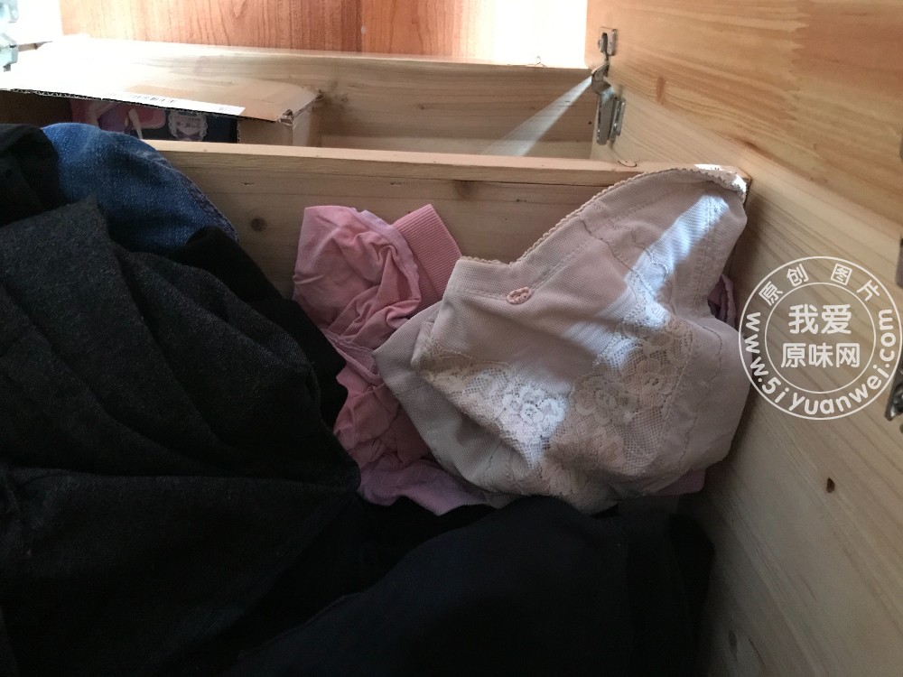 打开衣柜发现有两条内裤和一条高腰收腹型内裤,先拍照给大家分享,还有一条在衣架上挂着的内内