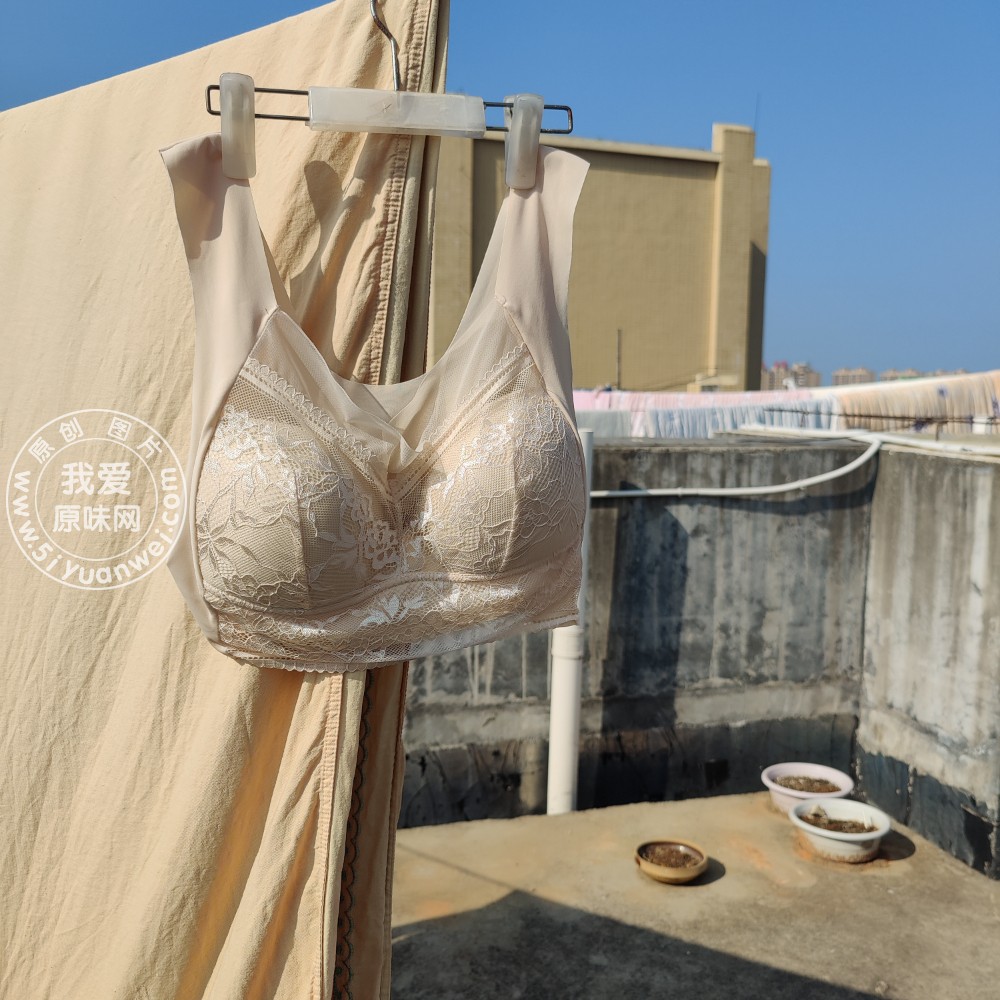 楼顶晾晒的肉色超大号蕾丝文胸