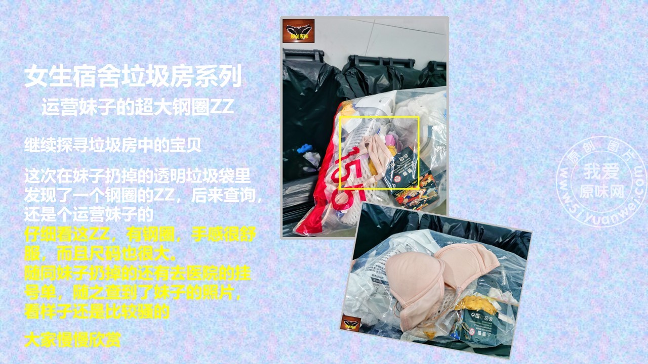 这次在妹子扔掉的透明垃圾袋里发现了一个钢圈的ZZ,后来查询,还是个运营妹子的,后面附妹子的照片