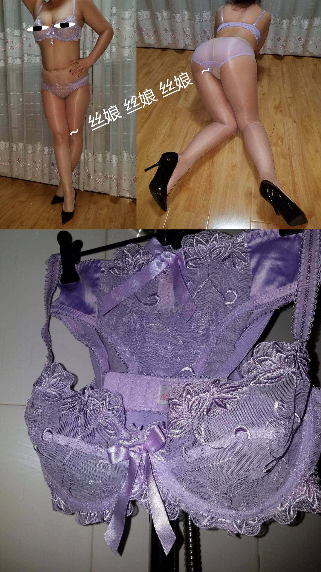 紫罗兰薄纱内衣套装 丝袜赠送