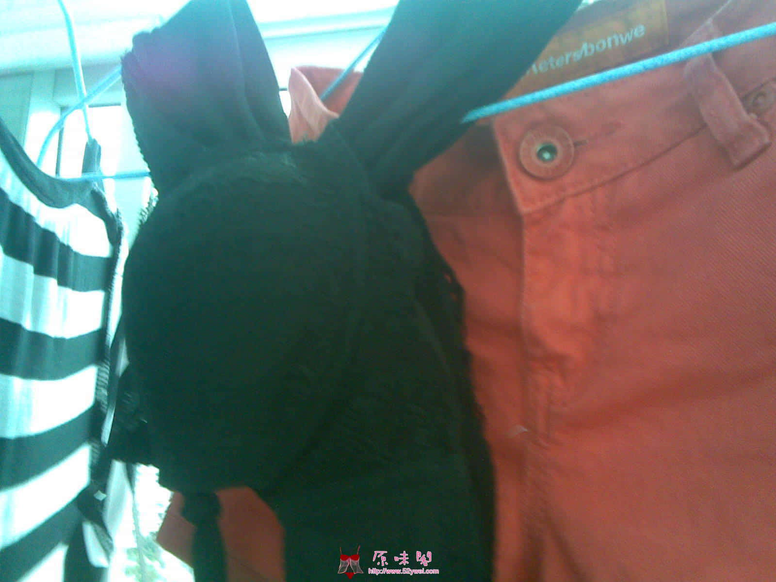 这次有去了朋友家里,趁她在上网,赶紧来到阳台。因为她们是两个女生住,所以有好几套。一太黑色蕾丝内衣,还有一条蕾丝内裤。取下来之后放在床上照了,放在鼻子上闻,一股淡淡的香气扑来。当时就硬了,去厕所后发现有没有洗的原味,当时就锁好门了,掏出兵器,一直弄S了出来。真舒服。
