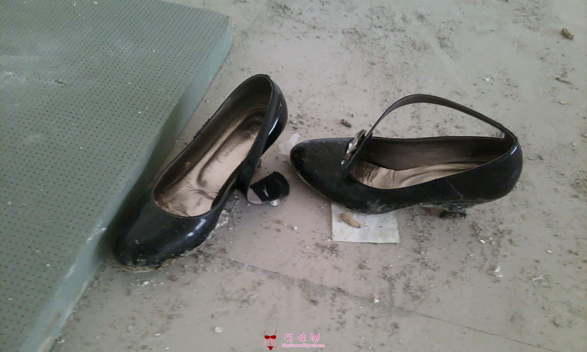 无意中在检查施工现场时发现的黑色坡跟鞋,味道浓重极了,脚臭加皮革味混杂无法辨别。只可惜场地人员众多无法SHE它,无比遗憾中。