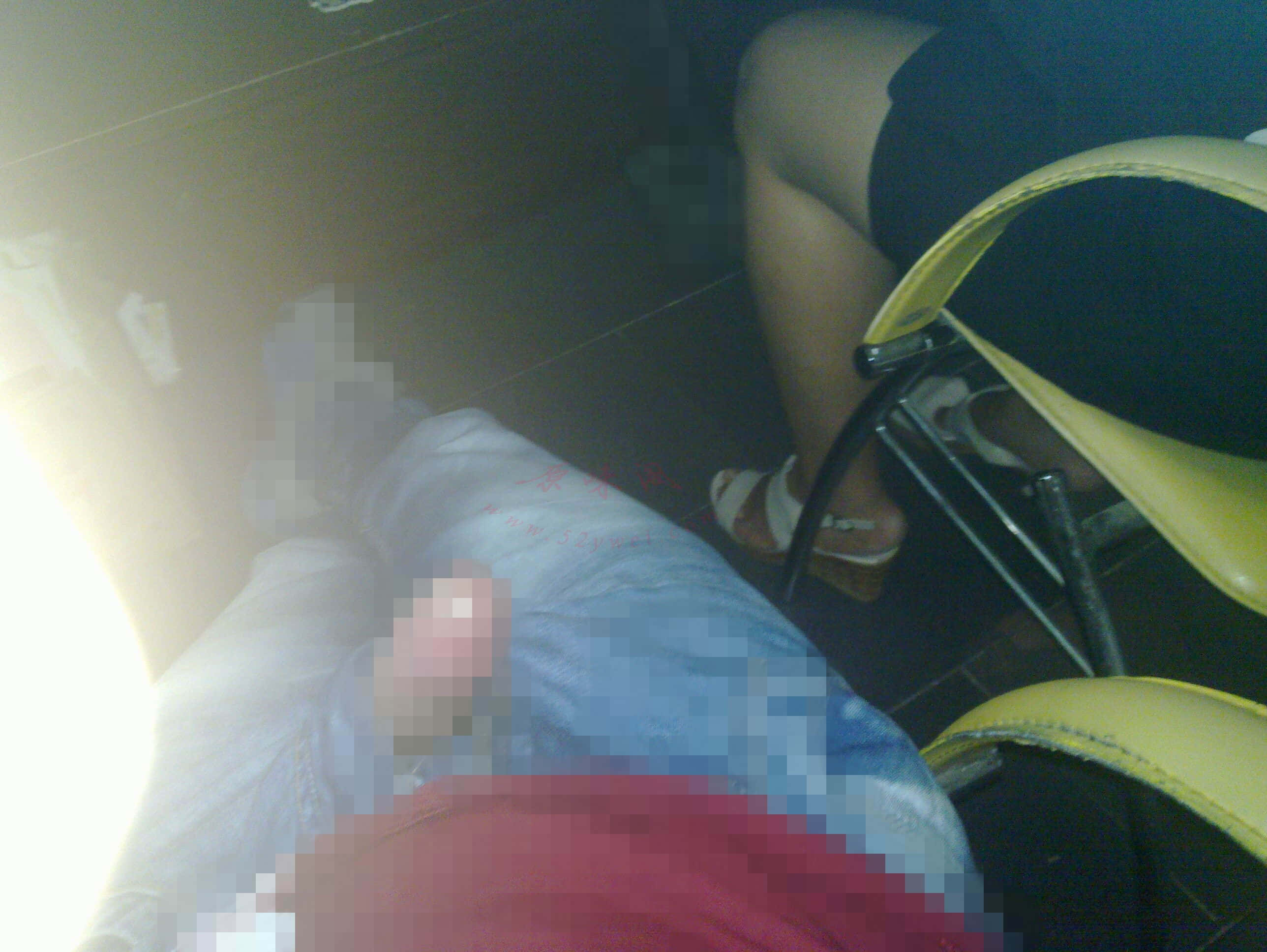 我也怕啊!处理不了啊!我就想了和法子!知道有种可以喝的莲子粉吗! 融化后和液态的子孙一样啊!正好我车上有我去沏了一杯用百事可乐的塑料杯,别的杯子怕碎然后找好角度故意碰掉因为是温水所以我估计她不会在意! 我也装睡 假装杯子落地猛然惊醒的样子!(这时候绝对不能拍照了!)她看了看腿上和脚上地板上全是! 我赶紧堂皇的说 对不起啊!我不小心啊等!她说没事没事~!我赶快找来抹布!知道为什么吗!纸巾擦容易被她闻!抹布就不会了!还有异味!~哈哈!~她坐在我旁边擦腿擦鞋 忙的不亦乐乎!只能不了了之!(大成功!)我赶紧多出去,假装吸烟了!反正一下你们老板下来你们要拜拜了!就不多和她废话了!心也惊了肉也跳了!玩也玩了!瘾也过啦!