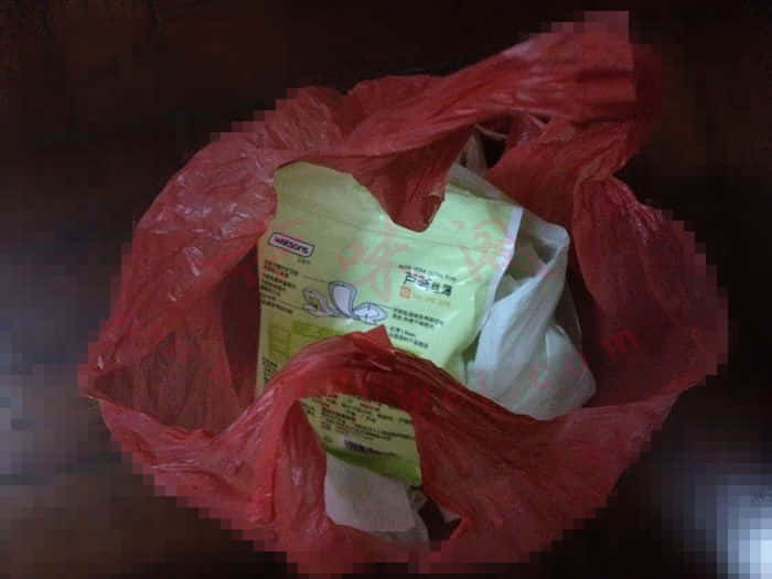 果然,今晚我在她们楼层的垃圾桶里,找到了一块巾巾装在一个口袋里,并且凭借着灵敏的嗅觉,确定了它的主人。